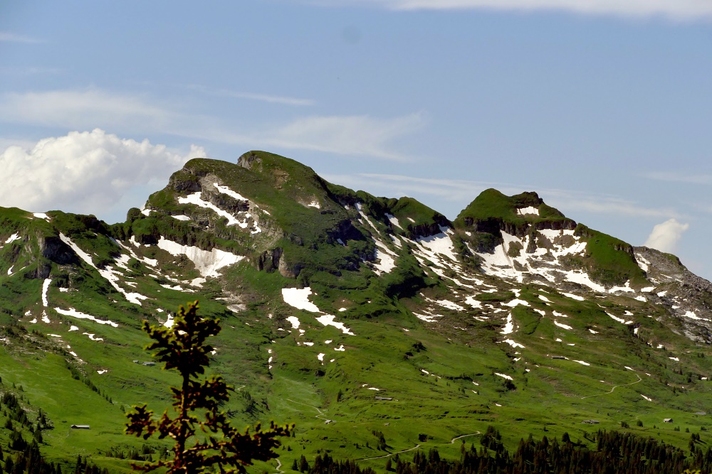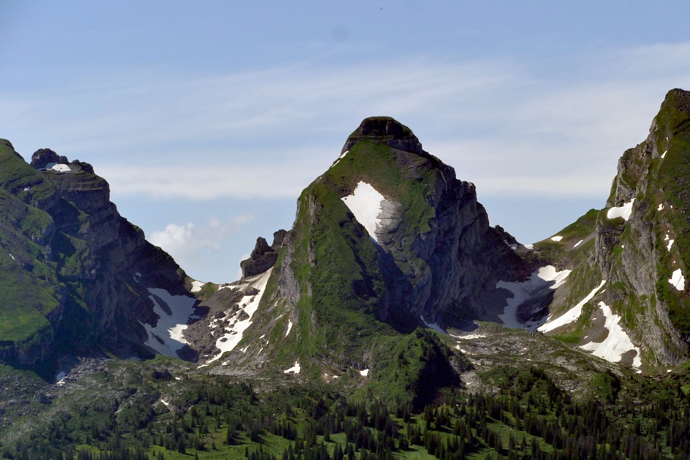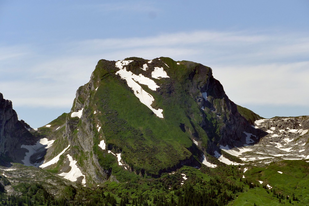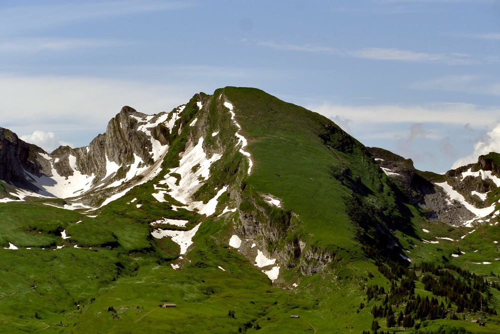 Hinterfallenchopf und Pfingstboden, die Hochalp dahinter ist schon vollständiger zu sehen.