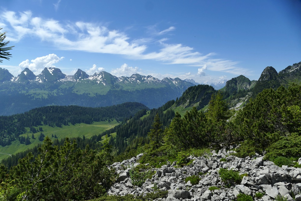 Blick zur Alvierkette, dahinter u.a. die österreichischen Gipfel von Zimba und Schesaplana
