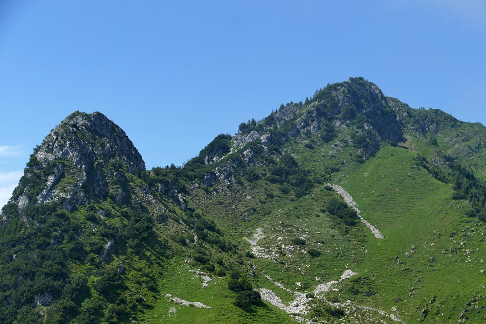 Blick zu der charakteristisch trapezförmig-flachen Form der Hochalp