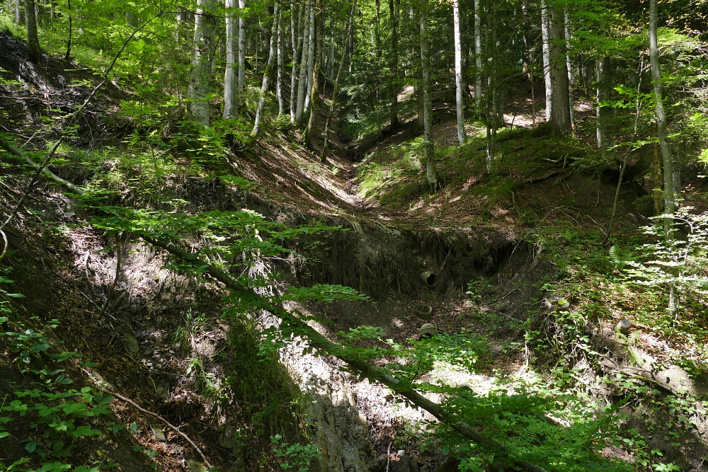 Nun biegt der Weg scharf nach Osten auf den Laad-Wald-Weg ab und quert dann den Chatzenbach.