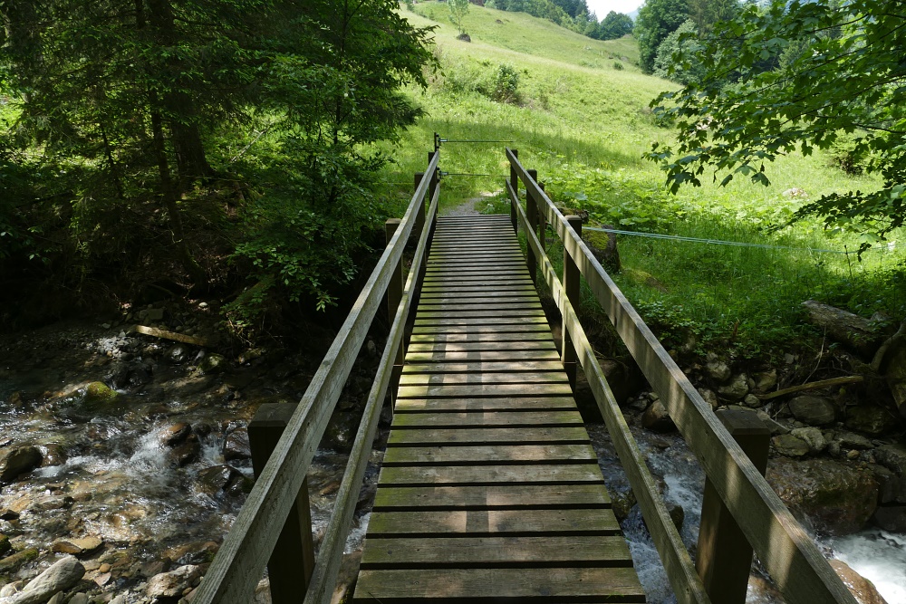 Das Brücklein überquert diesen Bacheinschnitt am Chratzenbachweg