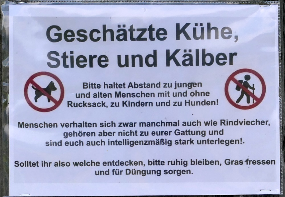 Auch unter Wanderern gibt es unangenehme Zeitgenossen, vor denen man die Rindviecher warnen muss.