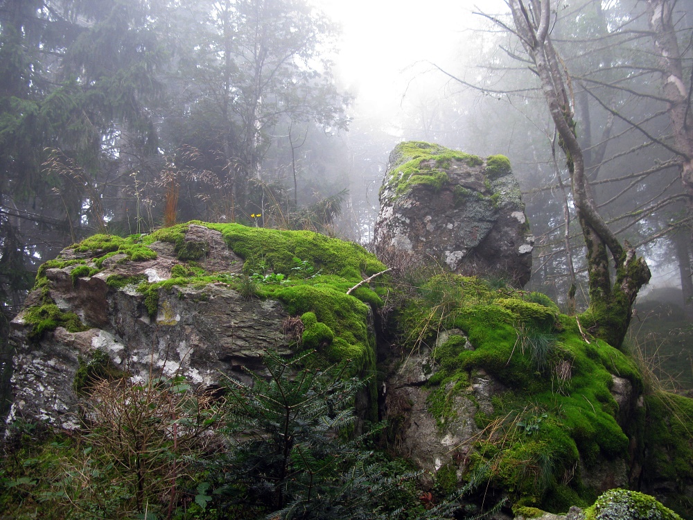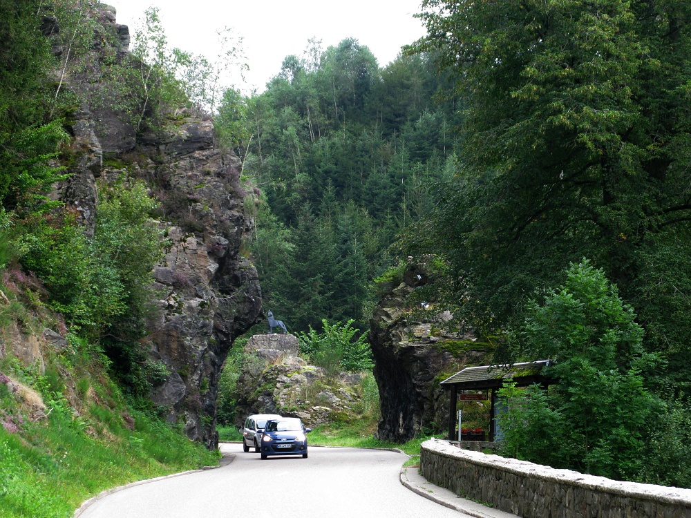 Felsdurchbruch (mit kaum sichtbaren Wolf) bei Gütenbach