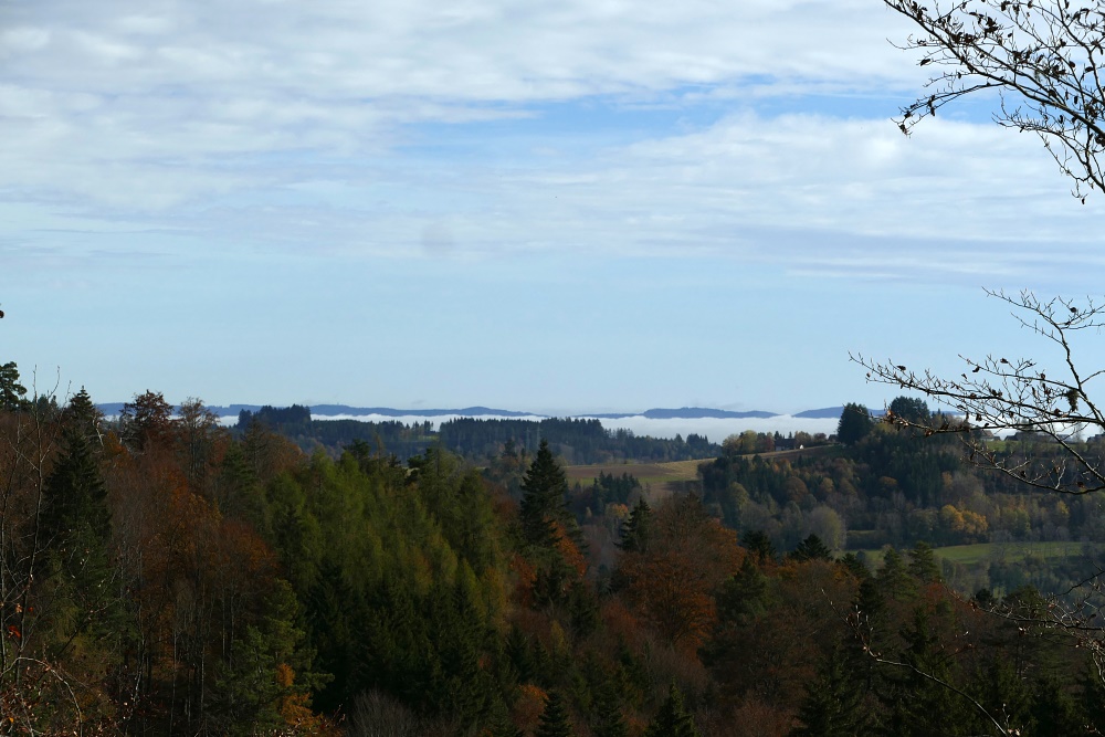 Am Lerchenbergweg - in der Ferne ist die Nebelobergrenze deutlich erkennbar. Das gesamte Tal liegt im tiefen Nebel.