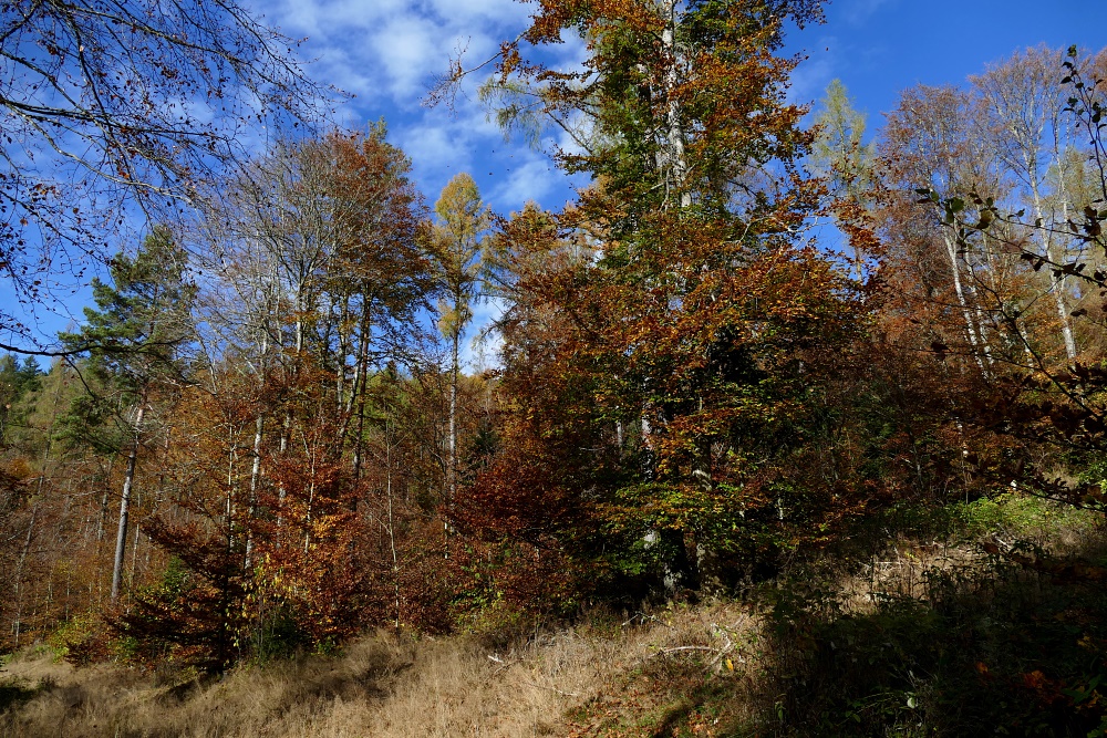 Eigentlich sollte man hier direkt zum Fohrenbach absteigen können, aber der Weg ist leider gesperrt, so dass man einen großen Umweg in Kauf nehmen muss.