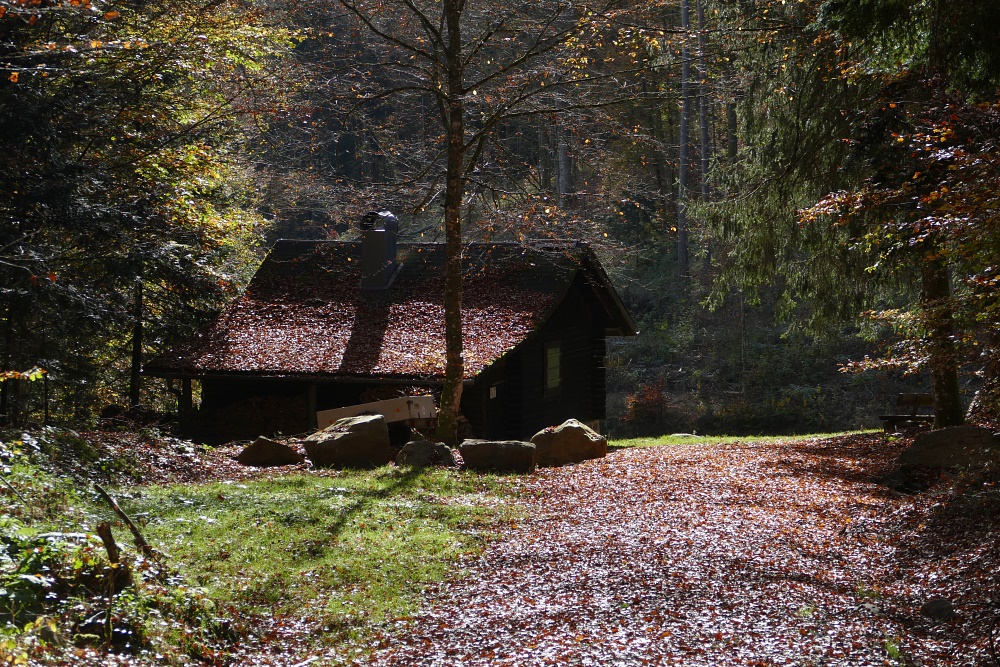 Der Weg führt noch lange auf einfachem Wege durch den Wald, bis er an der Dumrighütte endet. Hier atmet alles den Duft der neu zugezogenen Wölfe - deswegen auch die erweiterte Bezeichnung Wolfshütte Dumrighütte.