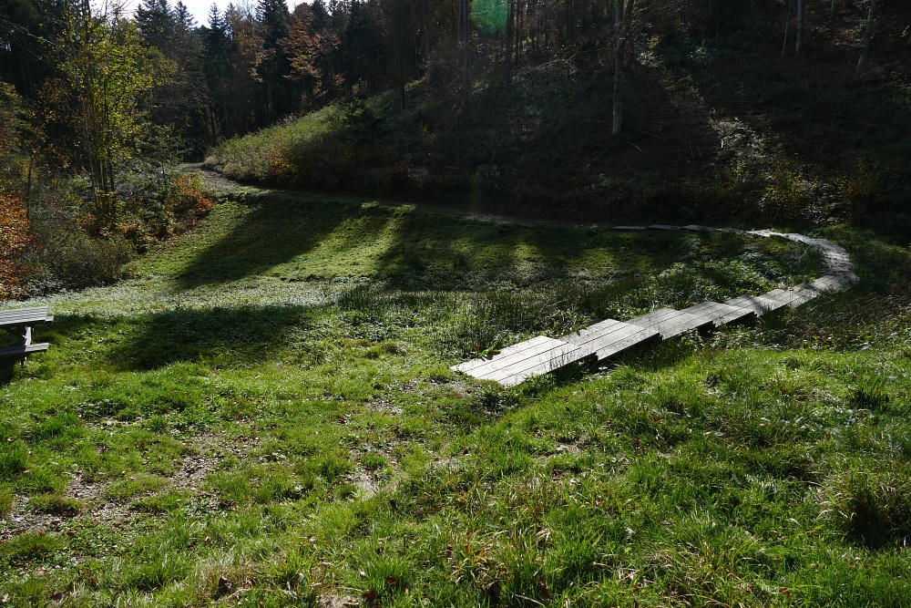 Bald verlässt der Wanderweg den Witznauweg, denn über dieses Brücklein führt der Rosenweg weiter zum Aussichtsfelsen.