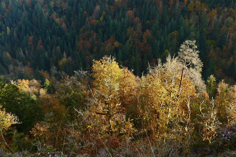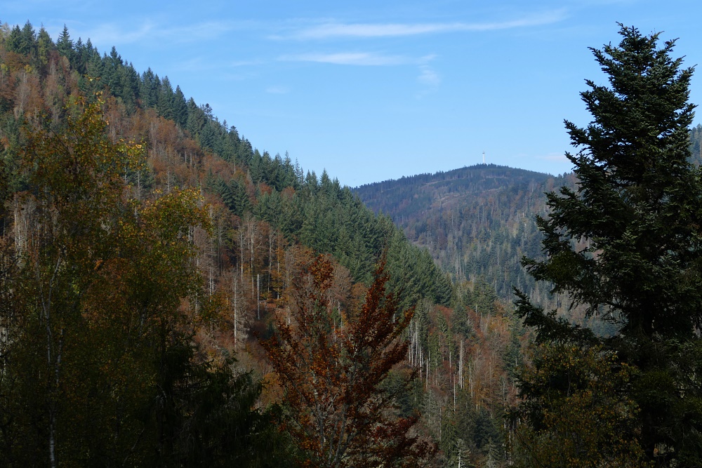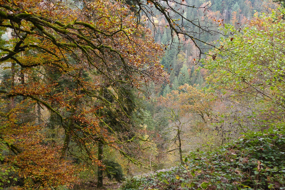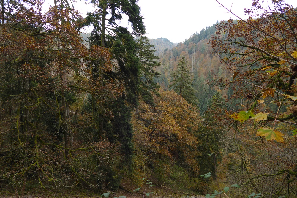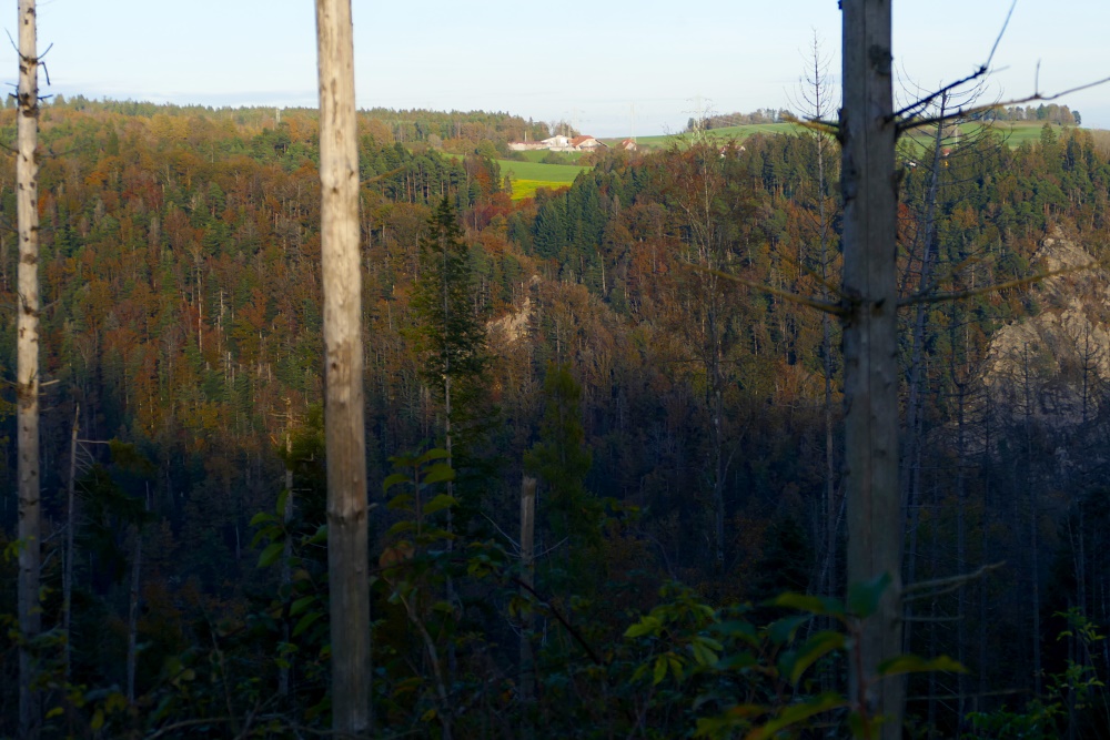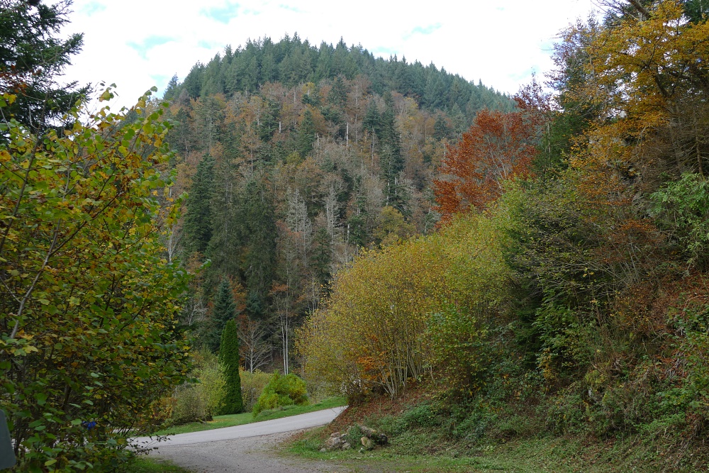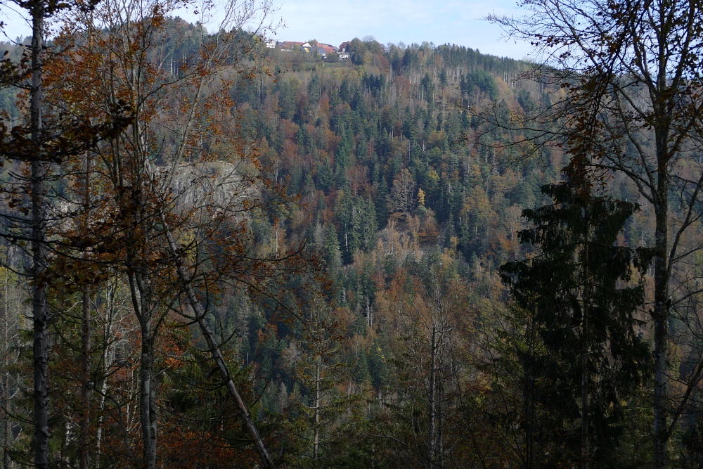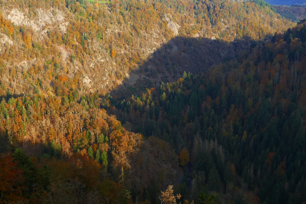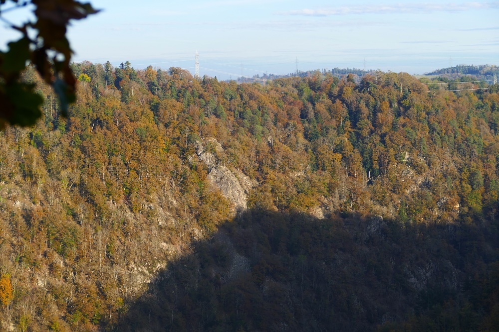 Der Gegenhang auf der anderen Seite der Schwarza ist bereits in der Sonne, während ich mich mit der Schattenseite begnügen muss.