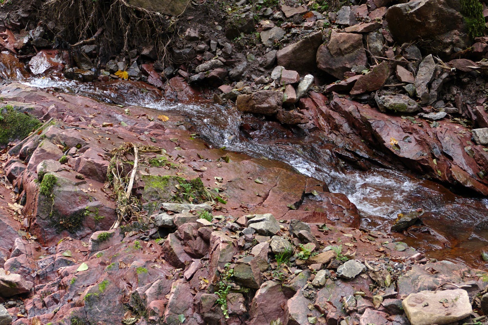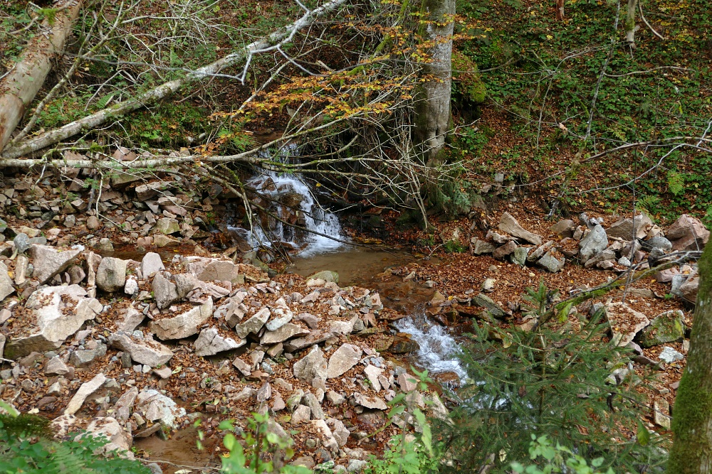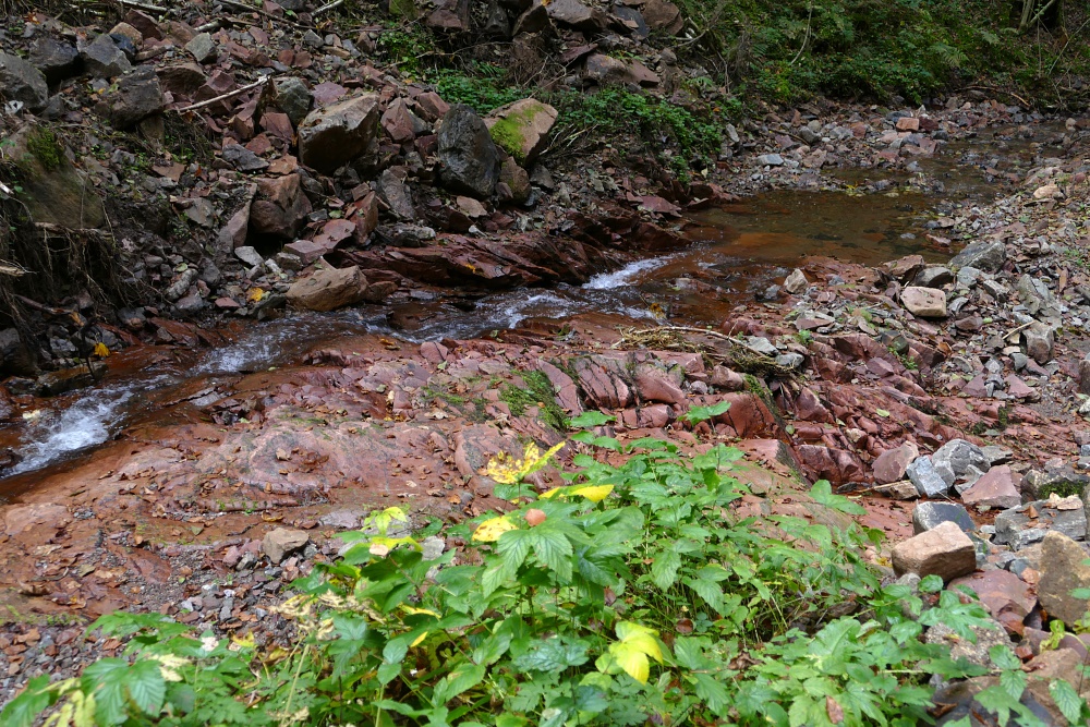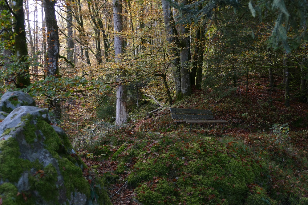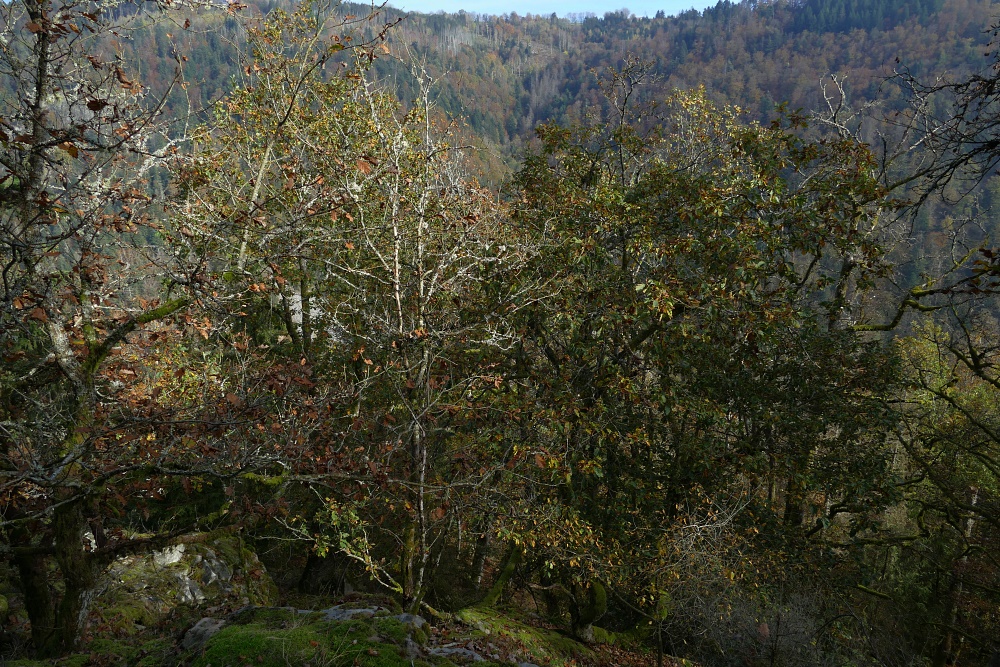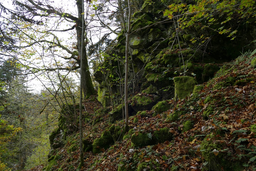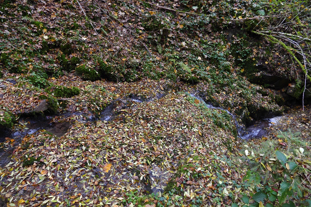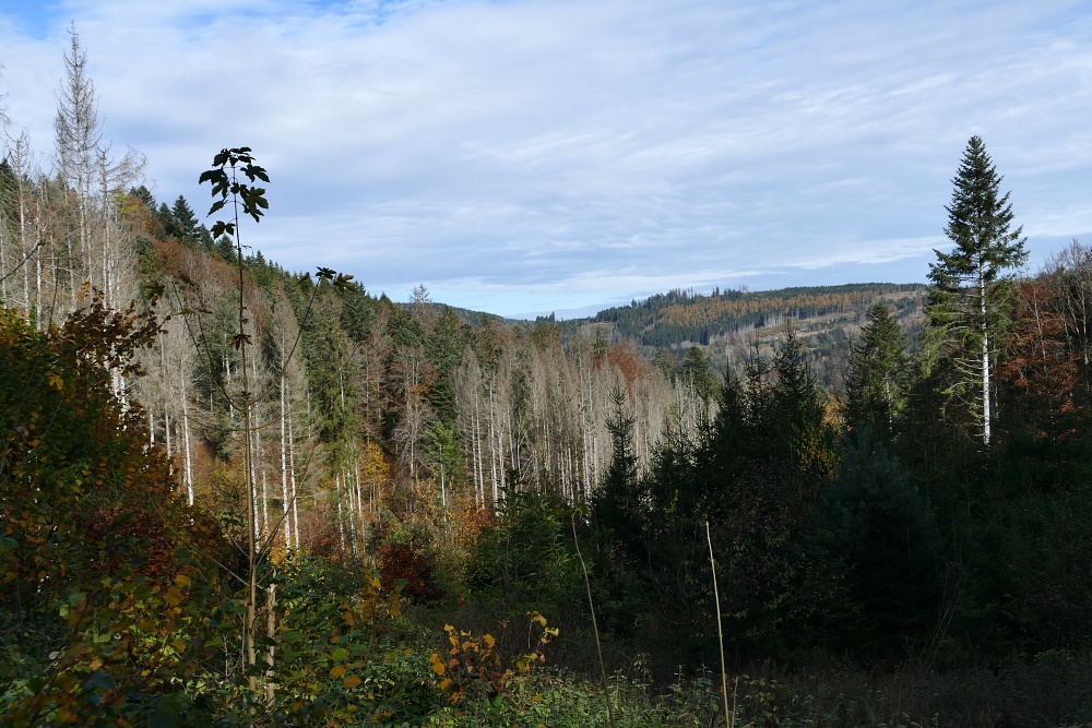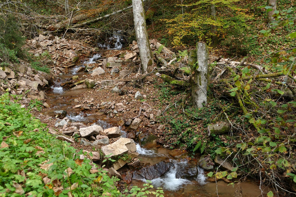 Der Gegenhang auf der anderen Seite der Schwarza ist bereits in der Sonne, während ich mich mit der Schattenseite begnügen muss.