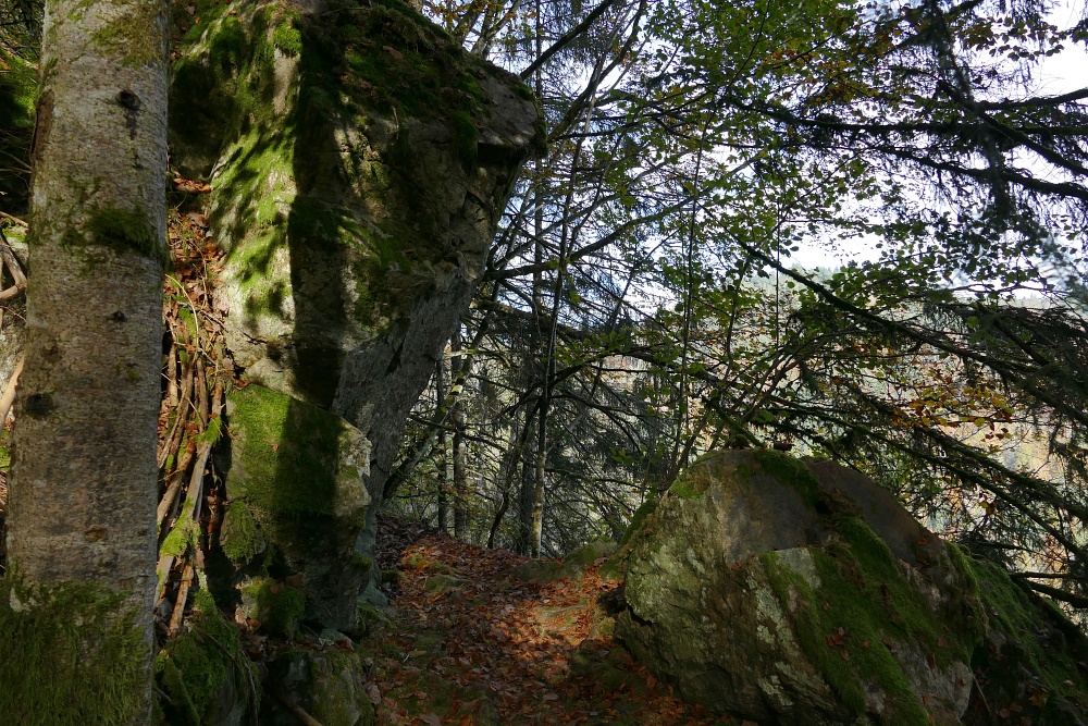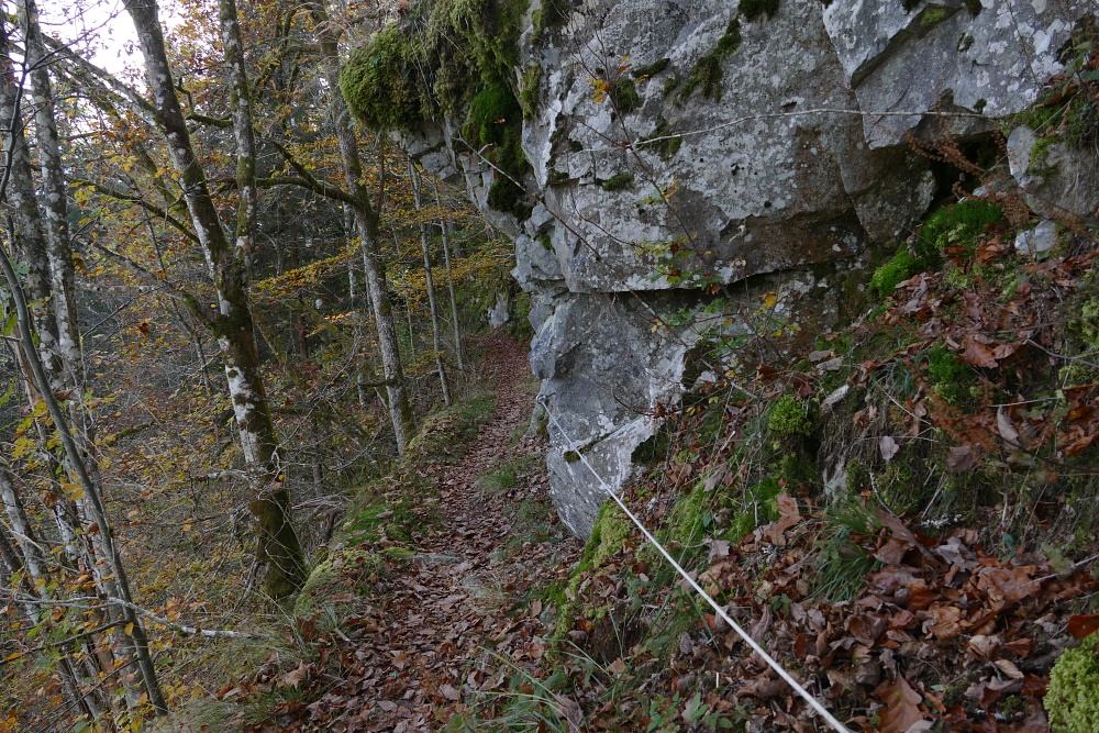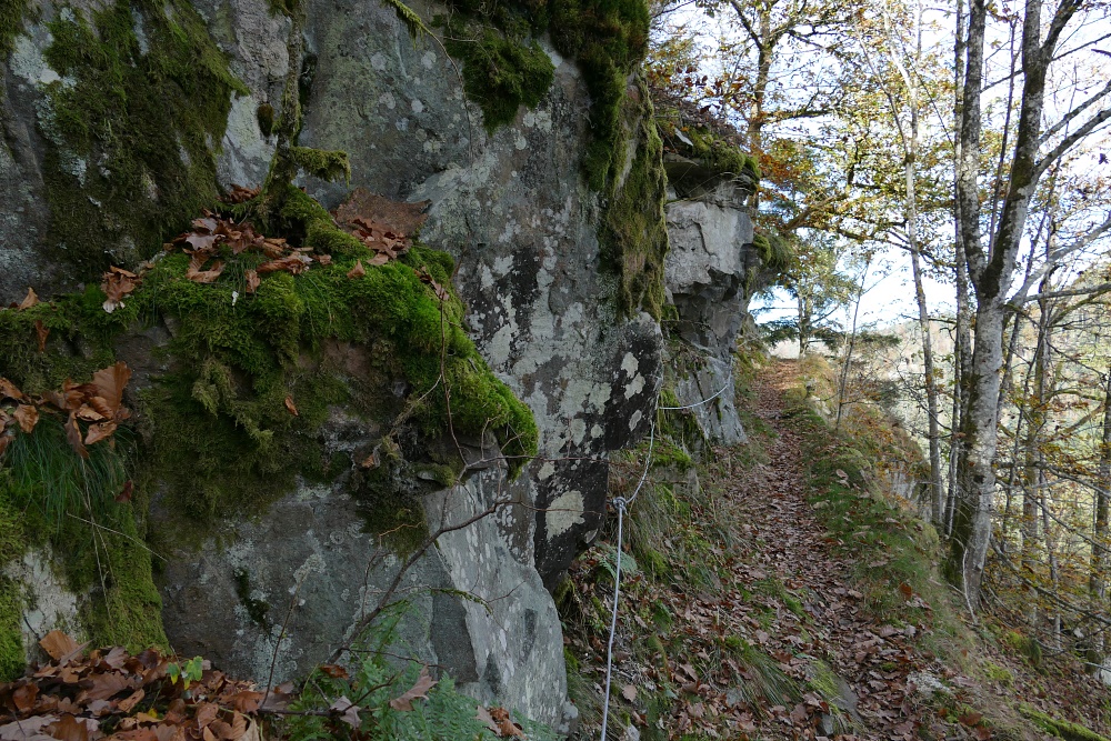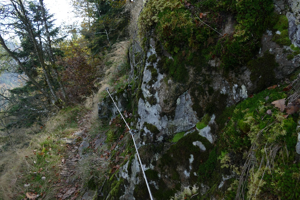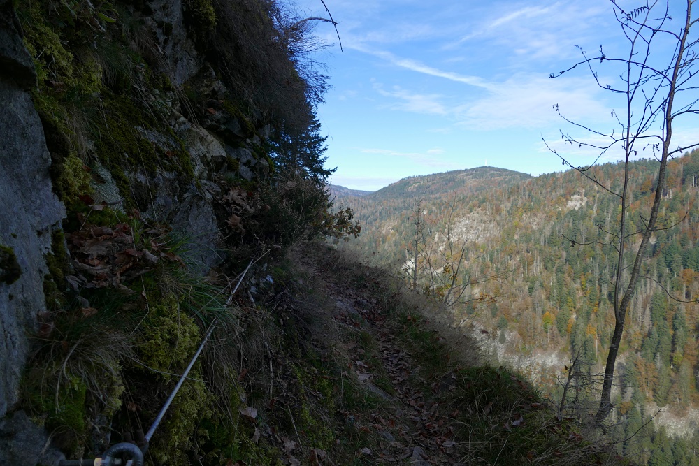 Der Wanderweg führt nun um einen Felsen herum und er wird immer ausgesetzter.