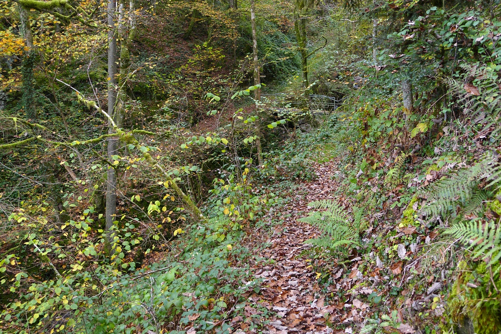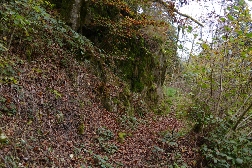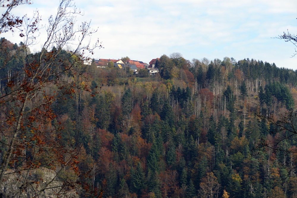 Der Hohfluhfelsen soll heute mein letztes Ziel sein. Dazu wandere ich auf dem Rosenweg (Witznauweg) aus dem Dorf hinaus.