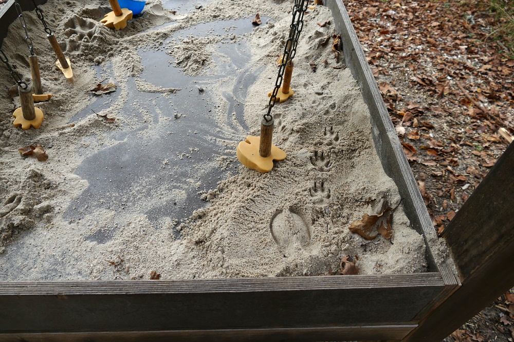 Mit an Ketten befestigten Matrizen lassen sich die Spuren des Wildes im Originalmaßstab im Sand abbilden.