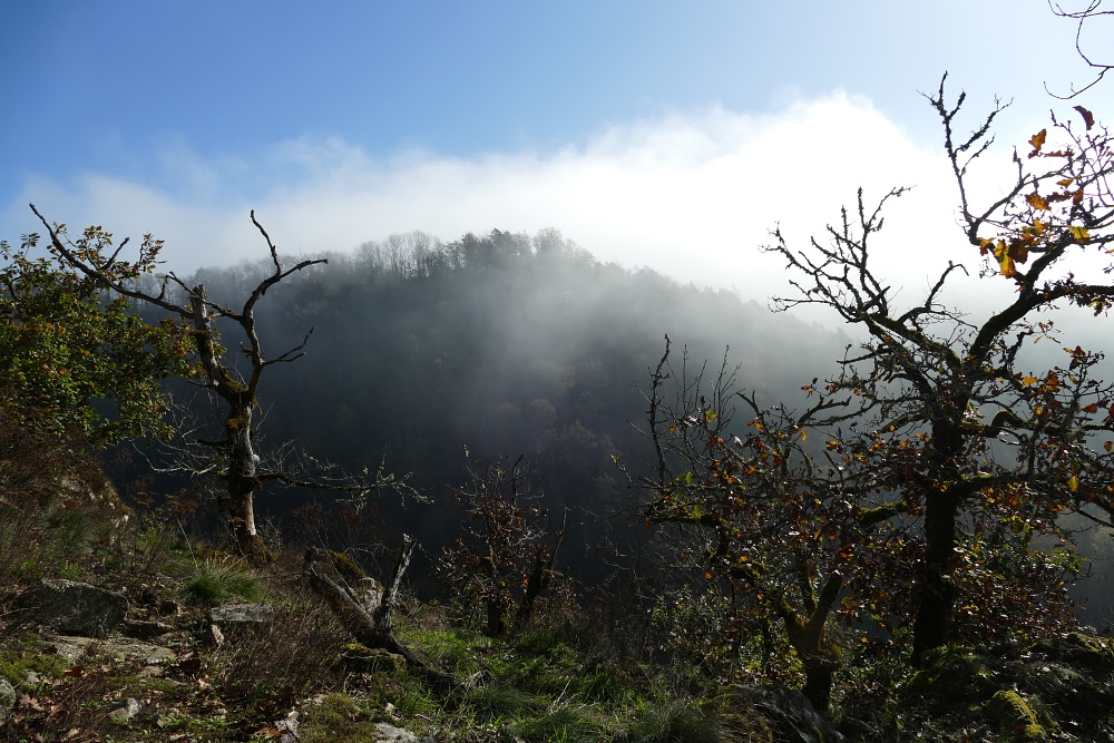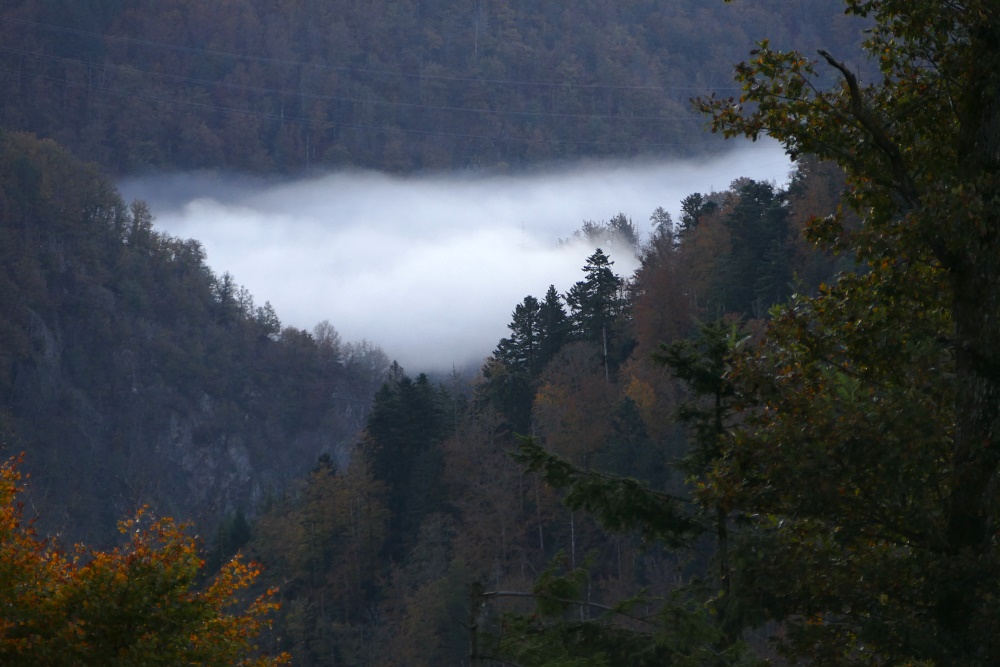 immer wieder ziehen Nebelschwaden aus dem Tal herauf.