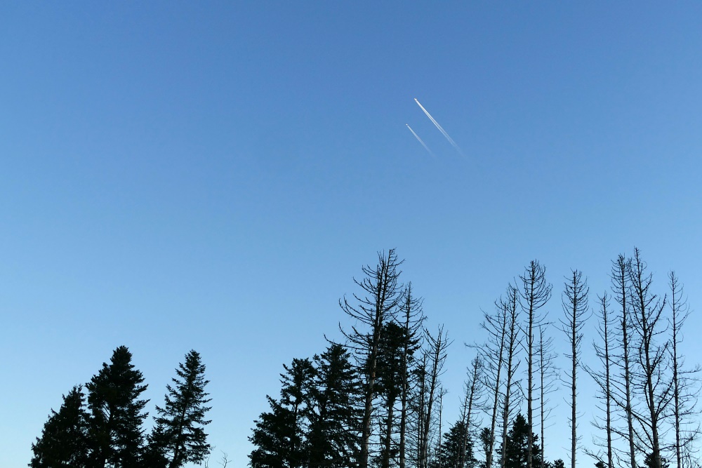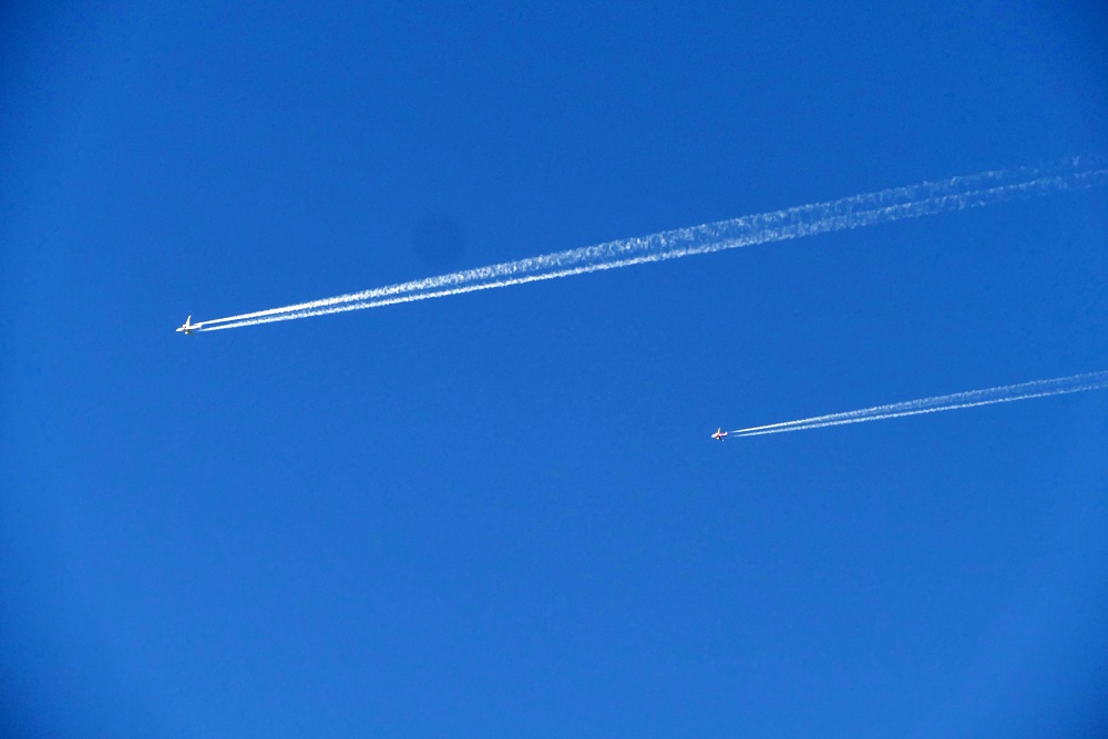Es verspricht, ein sonniger Tag zu werden. Die Stahlvögel am Himmel scheinen um die Wette zu fliegen.