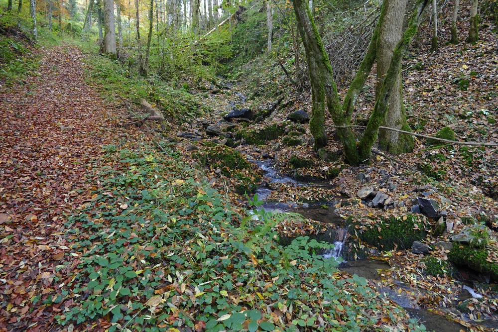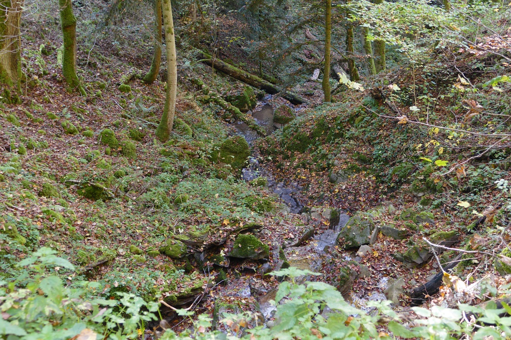 Das zeigt sich am eindeutigsten am Heckenbachgraben, wo ich mich durch die Sträucher plagen muss, denn ein Weg ist nur noch zu erahnen.
