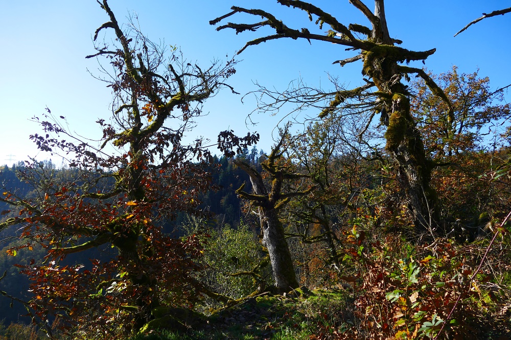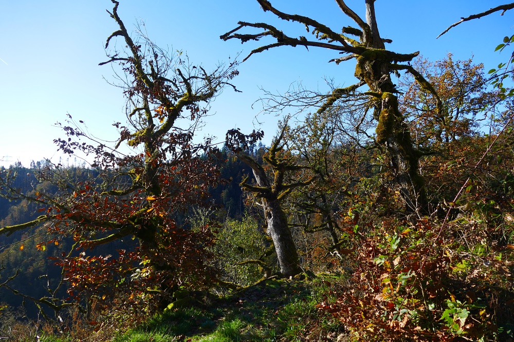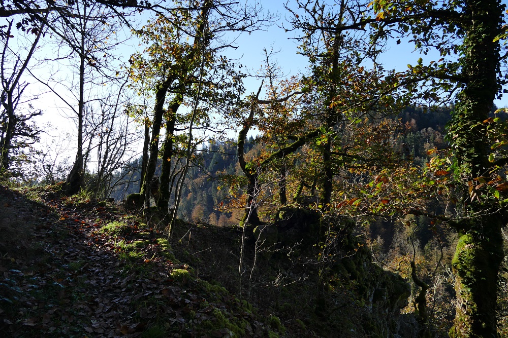 auf dem Hutpfad: Rückblick auf das Bänkchen am Aussichtspunkt
