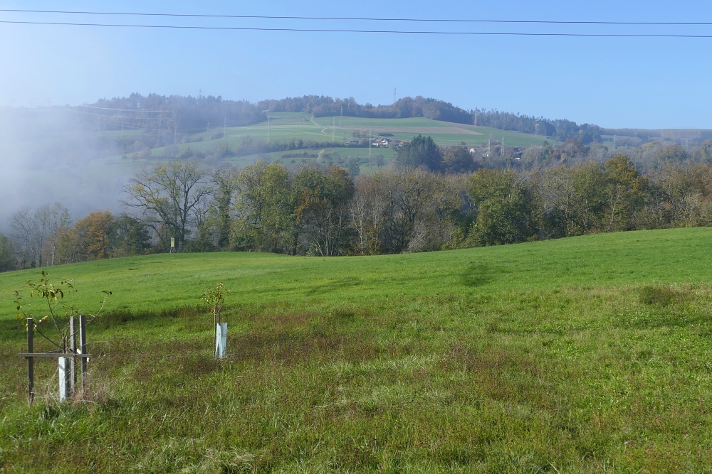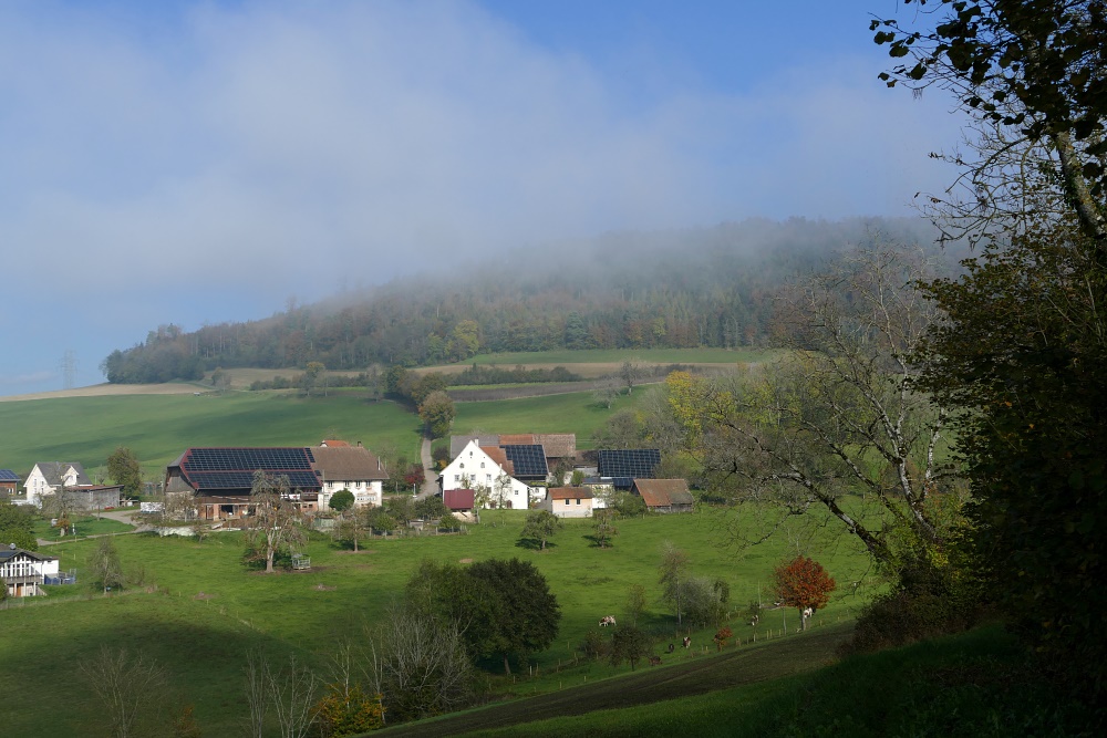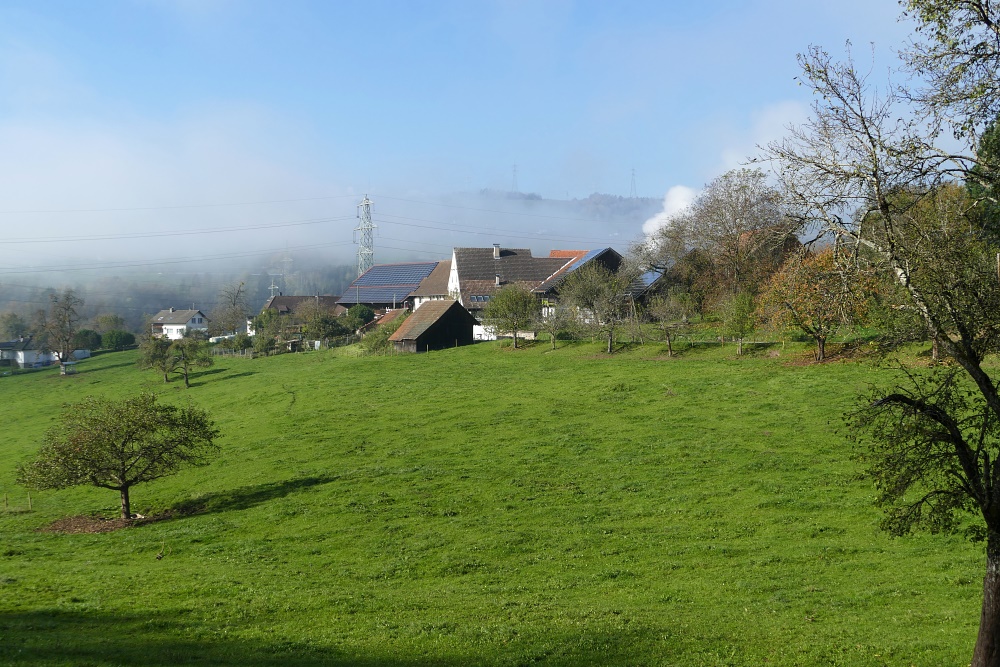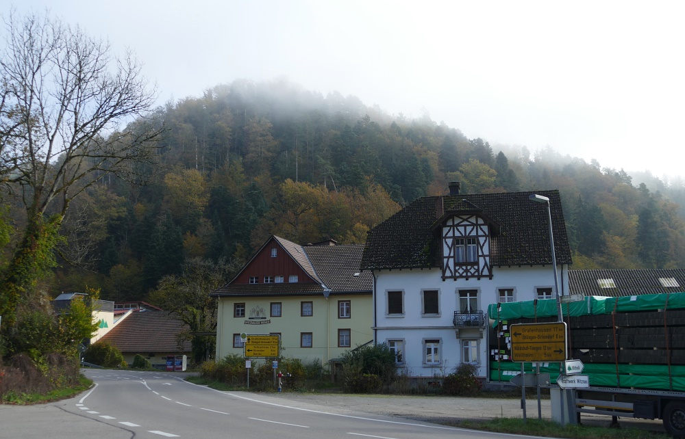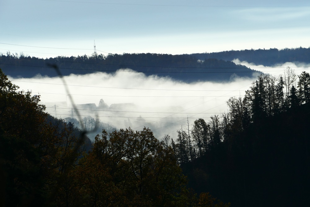 Es hilft alles nichts: Ich kann nur hoffen, dass ich beim Anstieg hoch nach Aichen nicht allzu sehr vom Nebel eingehüllt werde.