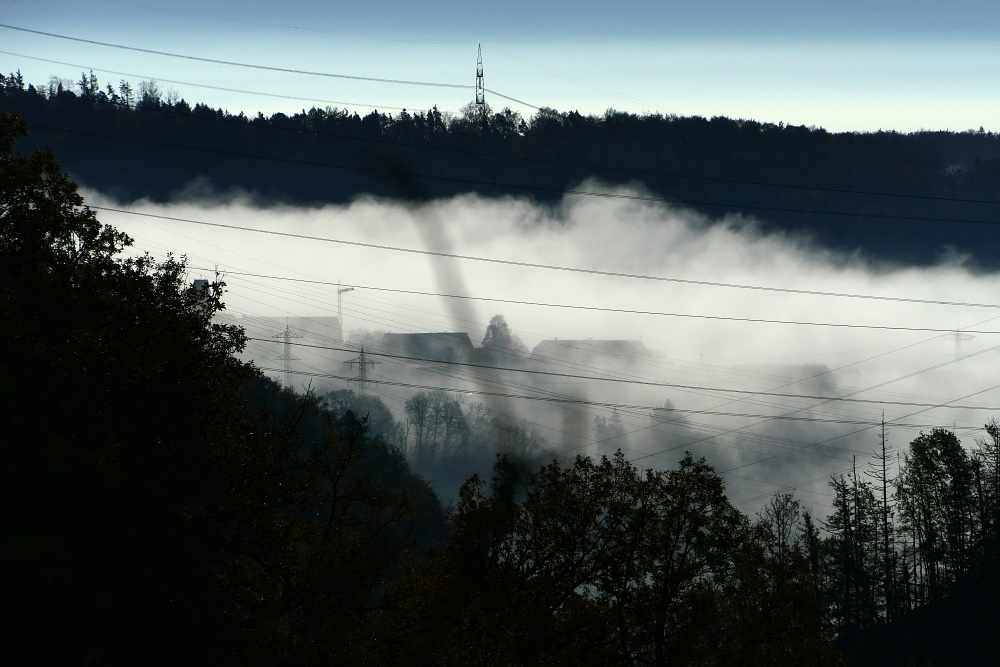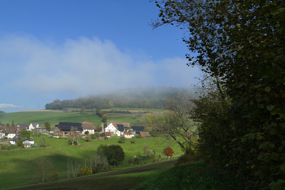 Schnörringen jenseits der Schwarza liegt immer noch im Nebeldunst.