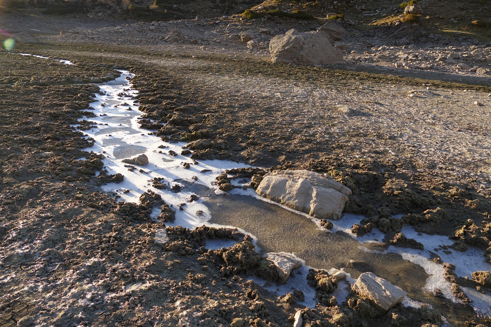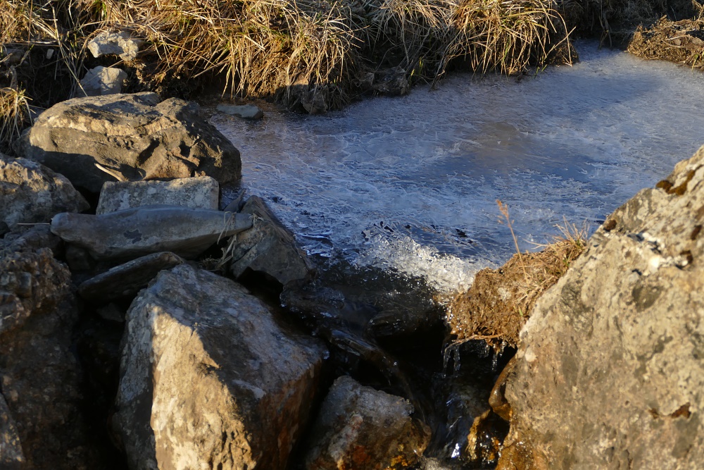 Der zugefrorene Brunnen; was aussieht wie Wasser ist in Wirklichkeit eine klare Eisschicht. Zum Glück hatte ich gestern Abend meine Wasserflasche bereits aufgefüllt.