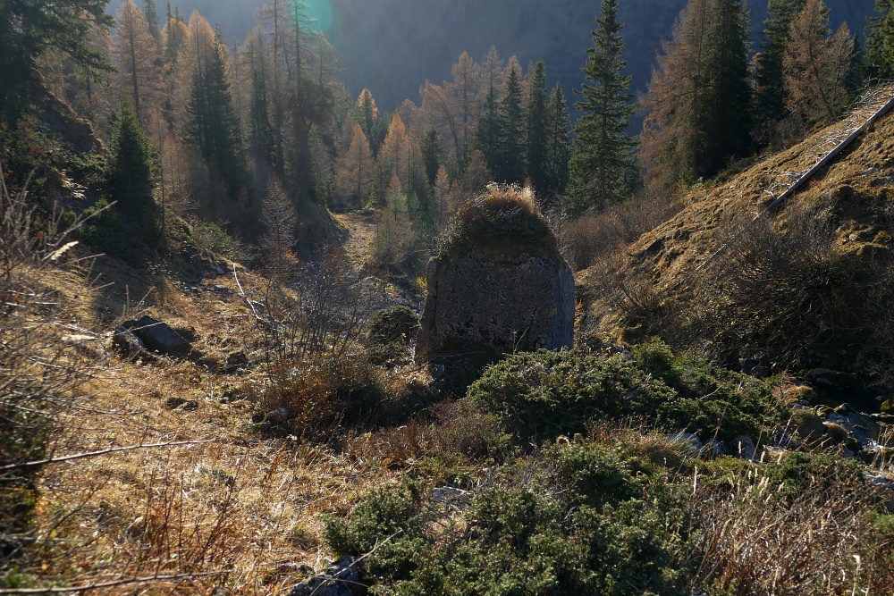 Angelangt am Verbindungsweg von Fläscher Alp zur Alp Ijes, der auch durch einen längeren Tunnel führt.