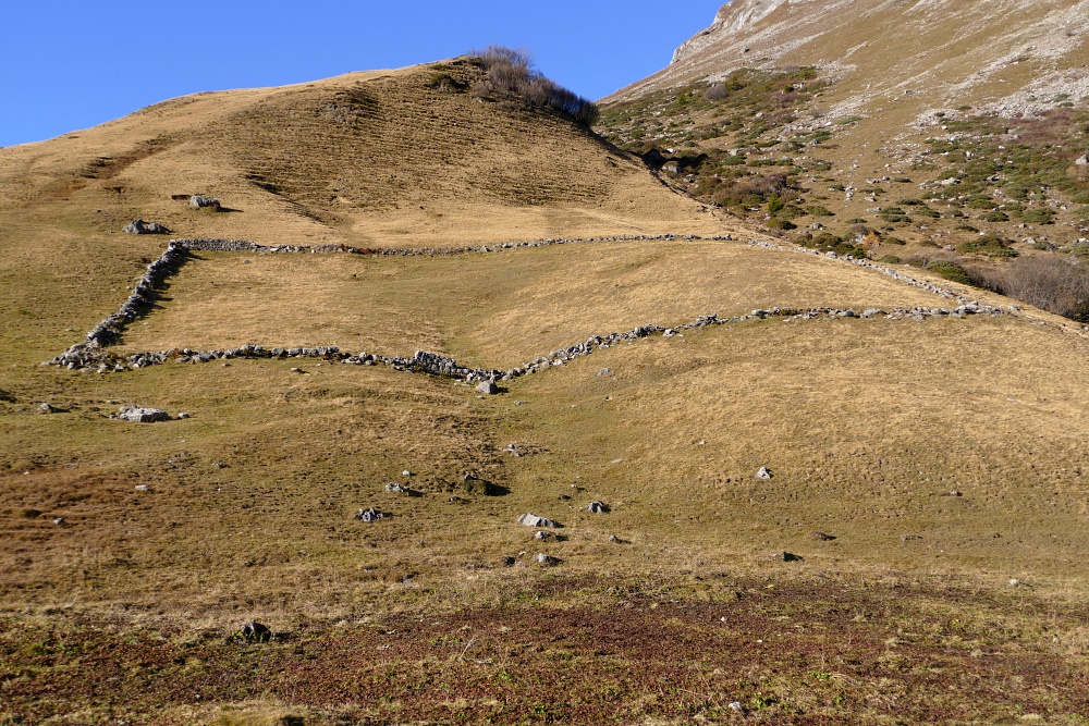 Bergflanke bei der Fläscher Alp mit Pferch