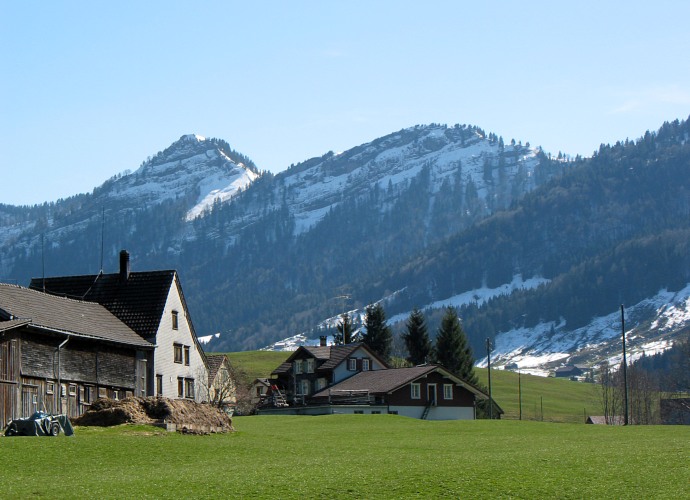 Route | - Grüenau (836 m) - Schwaderau - Färenstetten - Bruggerenwald - Hochalp (1521 m) - Faltig - Fächtleren - Grüenau |