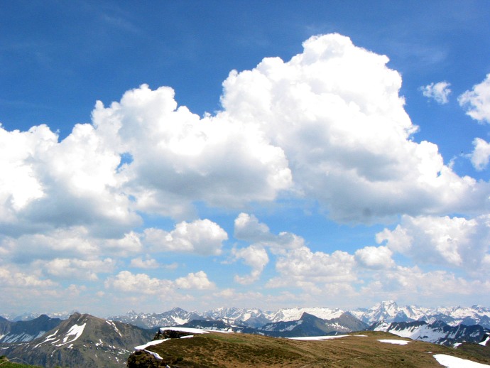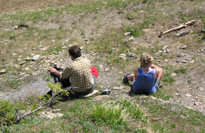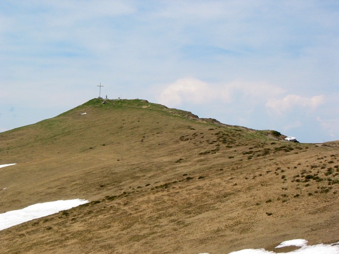 Eine kleine Rast ist angesagt. Nun müssen wir entscheiden, ob wir den Kammweg nehmen wollen oder den bequemen Fahrweg über die Untere Saluver-Alm, was aber bedeutet, mehr als hundert Höhenmeter zu verlieren. Wir entscheiden uns für das Risiko.