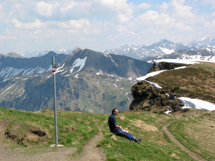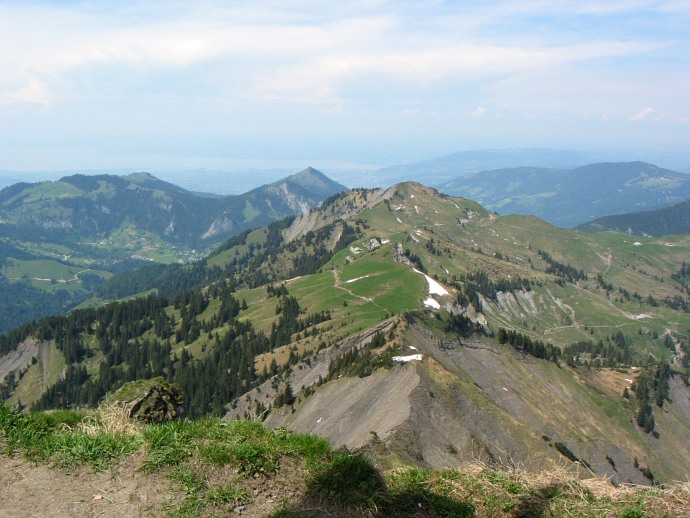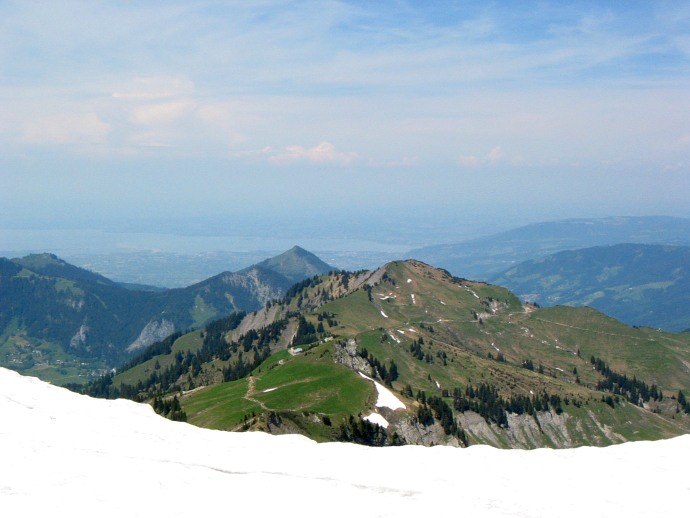Der Blick reicht über den Binnelegrat und bis zum Bodensee