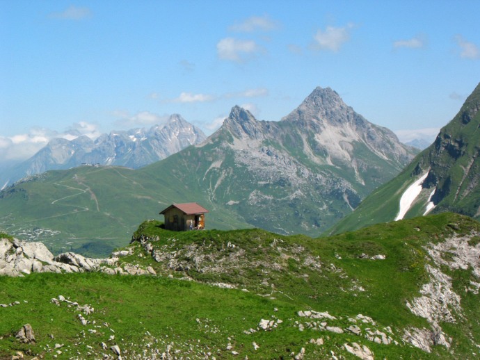Route | Schröcken (1200 m) → Braunarlfürggele (2145 m) → Biberacher Hütte (1850 m) |