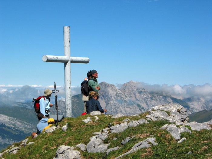 Gipfelkreuz des Aiguilles de Calvaires. Am Gipfel angekommen!