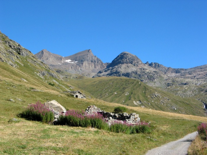 Weiter geht es bis hinunter nach Bonneval sur Arc; von dort zweigt ein kleines, etwas verstecktes Sträßchen ab, das bis nach le Mollard mit dem Auto befahren werden darf, laut Straßenschildern aber nur auf eigens Risiko.