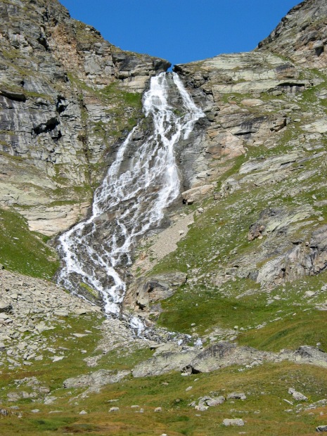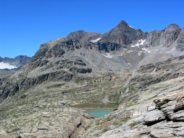 Ich lande schließlich nach weiterem, beschwerlichen, aber nicht schwierigem Aufstieg am 3 030 m hohen (wenig spektakulären) Col de Pariott es. Von dort aus wäre auch ein direkter Abstieg möglich, aber ich möchte nochmals zurück zur Refuge.