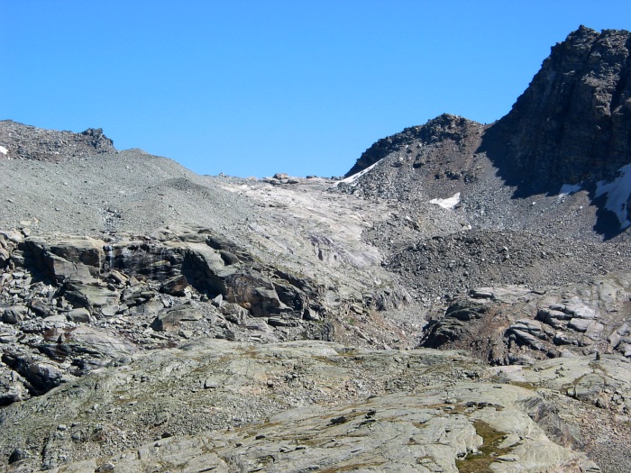 Nochmals der Glacier des Sources de l´Arc, mit den zurückgebliebenen Seitenmoränen.