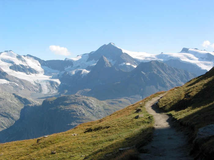 Auf der anderen Talseite überragt der l´Albaron die umliegenden eisbepanzerten Berge.