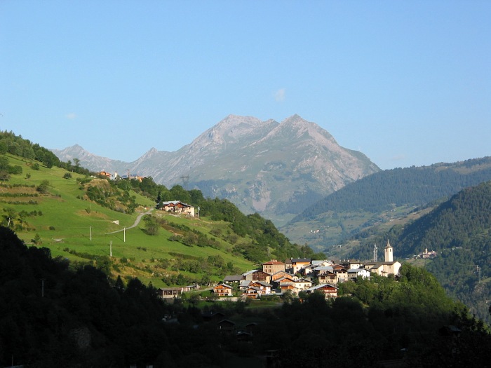 Dorf bei der Fahrt hinunter nach Bourg St. Maurice.