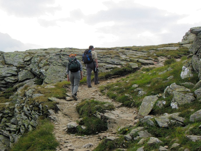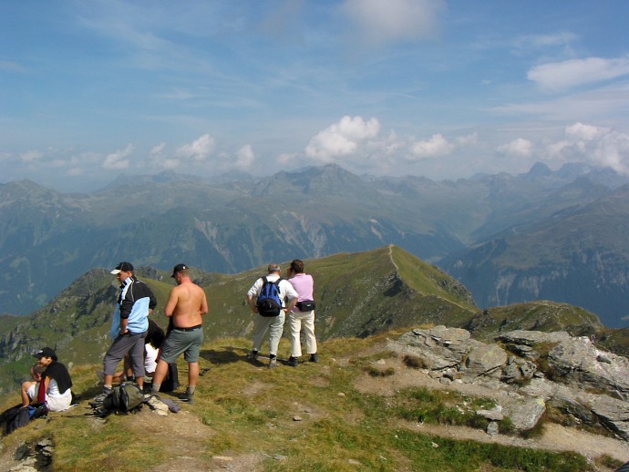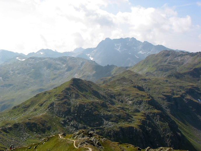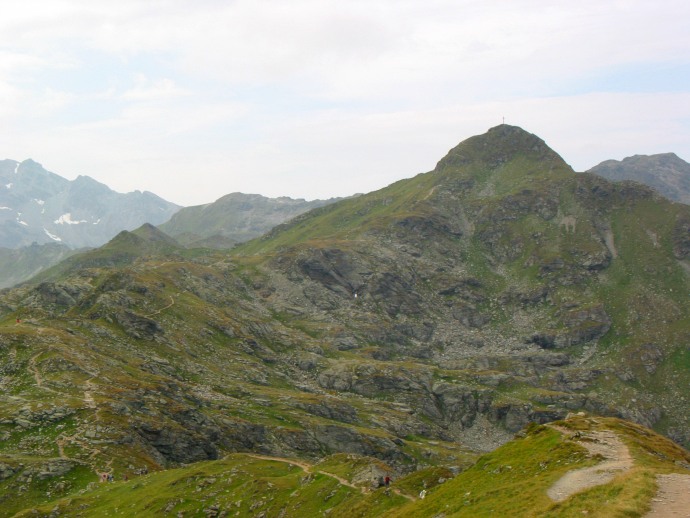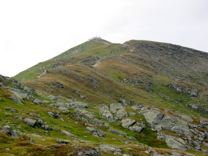 Vom Bergrestaurant Nova Stoba aus steigen wir hoch Richtung Versettla (2 372 m), wo sich schon ein ganzer Pulk von Menschen befindet.
