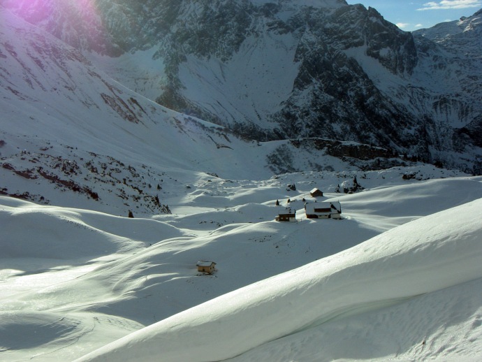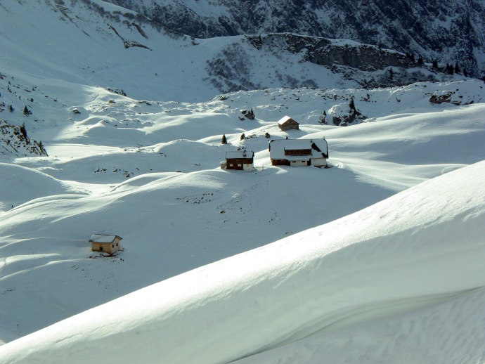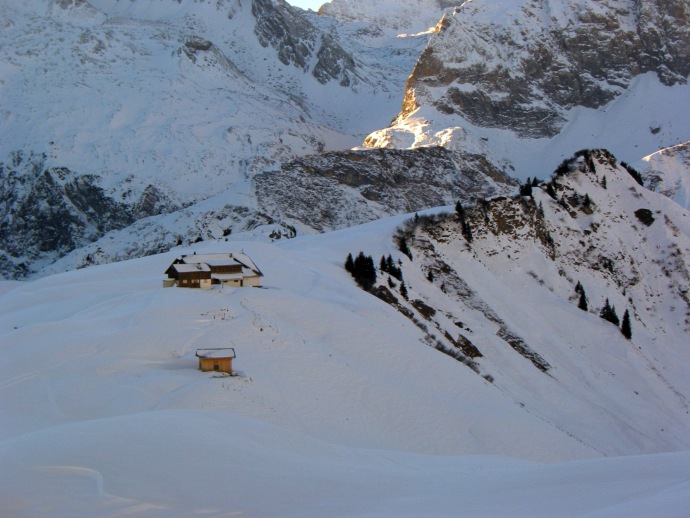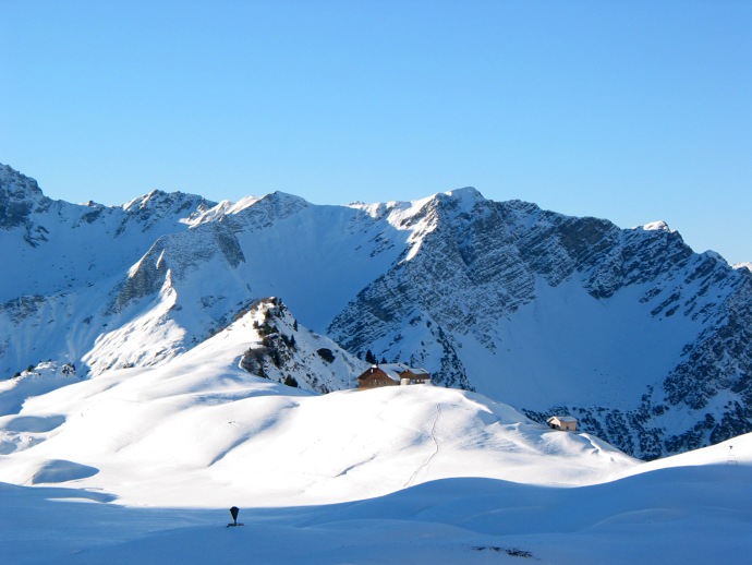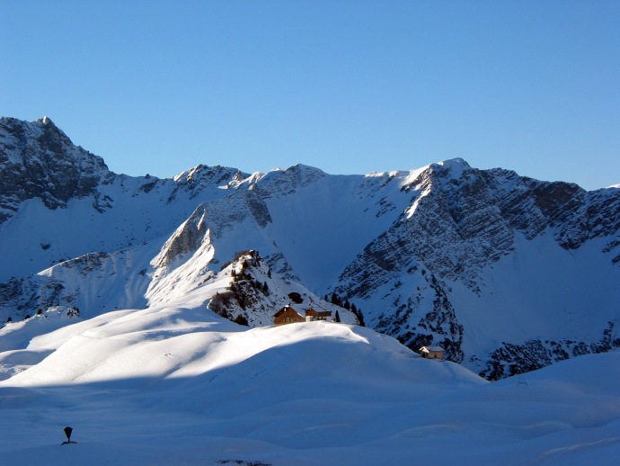 - Parkplatz bei Landsteg (1100 m) - Biberacher Hütte (1845 m) - Schneeschuhwanderungen in der Umgebung - Parkplatz bei Landsteg |