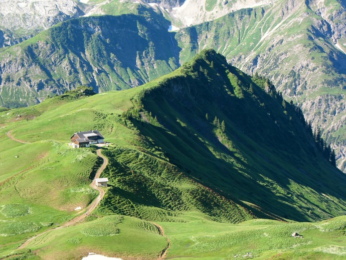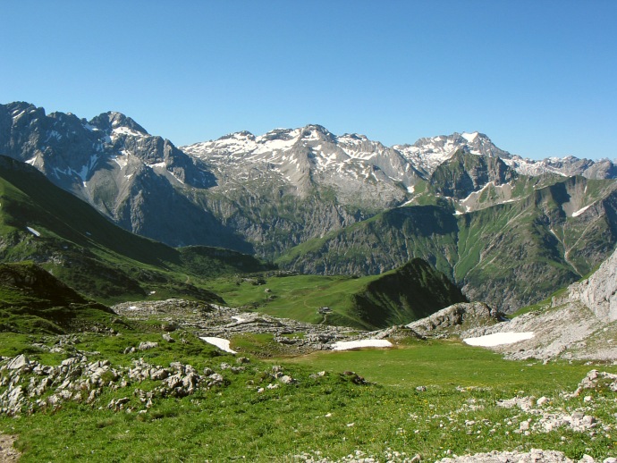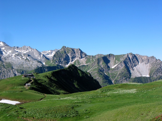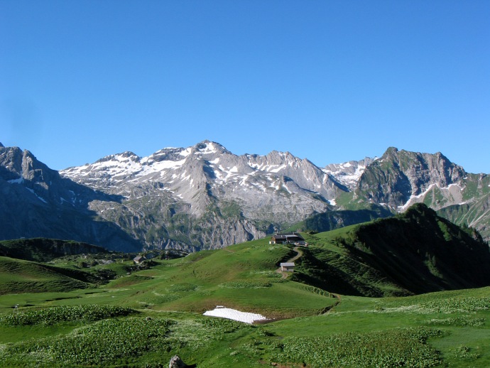 - Schröcken (1270 m) - Braunarlfürggele (2146 m) - Biberacher Hütte (1840 m) - Hochkünzelspitze (2399 m) - Kraftwerk bei Schoppernau |