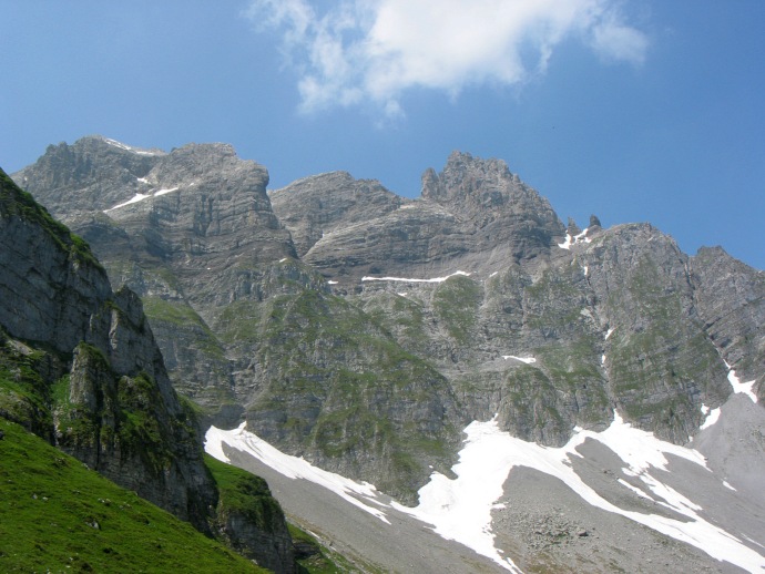 - Habergschwänd (1282 m) - Hüttenberge - Meerenboden - Ober Mürtschen - Mürtschenfurggel (1840 m) - Hummel - Hinter Tal - Vorder Tal - Filzbach (750 m) |