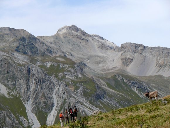 In der Ebene unterhalb des hier nicht sichtbaren Föllakopfes liegt auf einer kleinen Anhöhe die Sesvennahütte (2258 m), das Ziel der meisten meiner Mitwanderer.