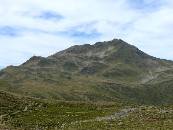 Rückblick vom Wanderweg in entgegengesetzter Richtung, nach Nordwest, zur Vernung-Spitze.