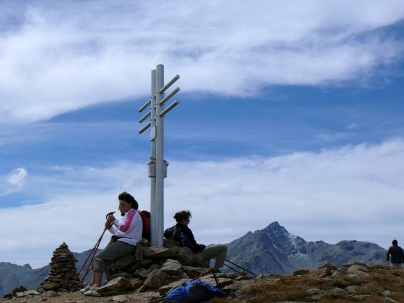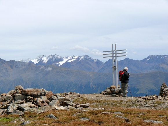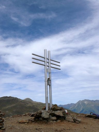 Gipfelkreuz des Watles. Hier beginnt der Wind ganz schön zu pfeifen, so dass es geraten erscheint, ein etwas geschützteres Plätzchen aufzusuchen.