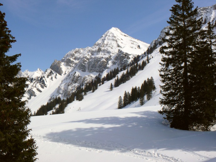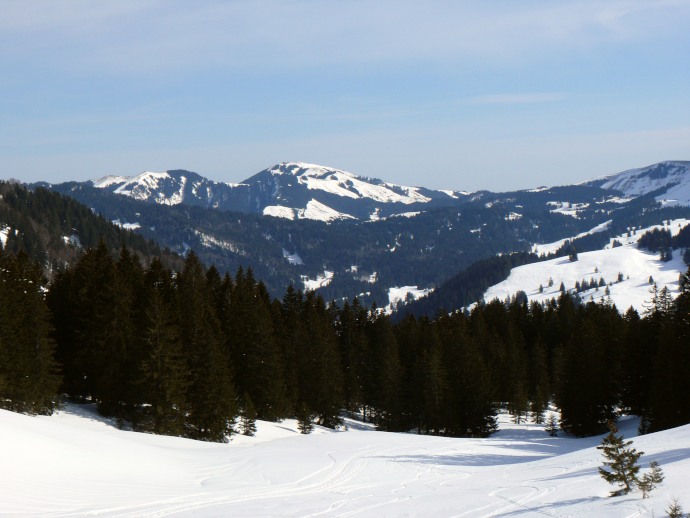 Lauchwiesflanke; ganz hinten spickelt die Spitze des Wildhuser Schafberges (oder des Altmann ?) hervor.