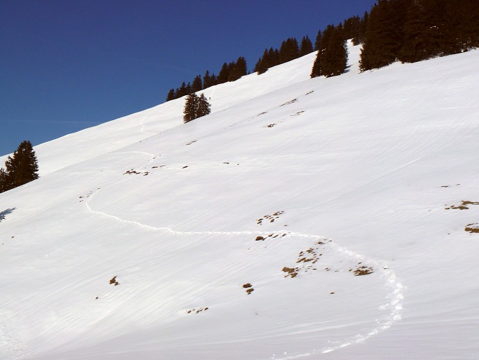 Die einsame Schneeschuhspur in der Stockbergflanke