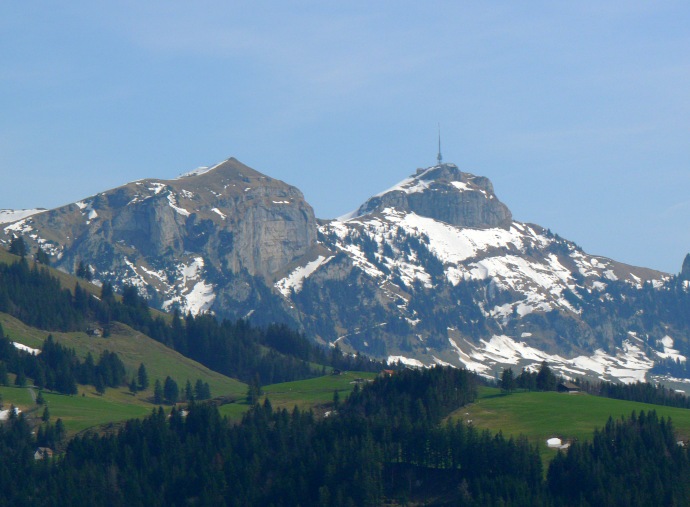 - Appenzell (800 m) - Sittertal - Steinegg - Bifig - Eggli - Eggerstanden (892 m) - Langenegg - Höch Hirschberg (1167 m) - Guggerloch - Appenzell |