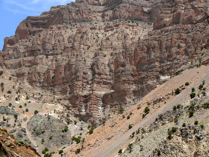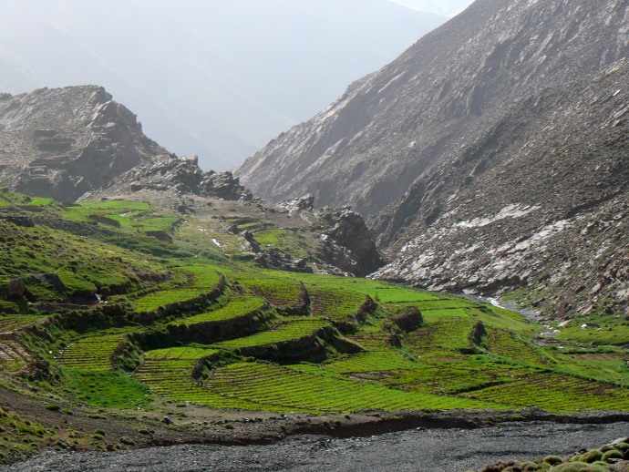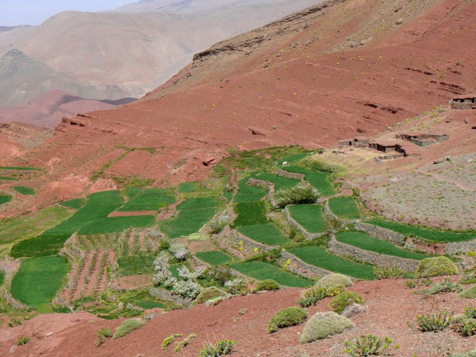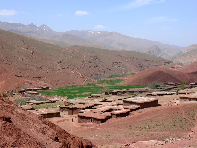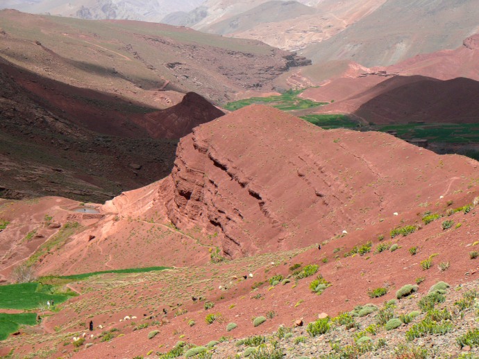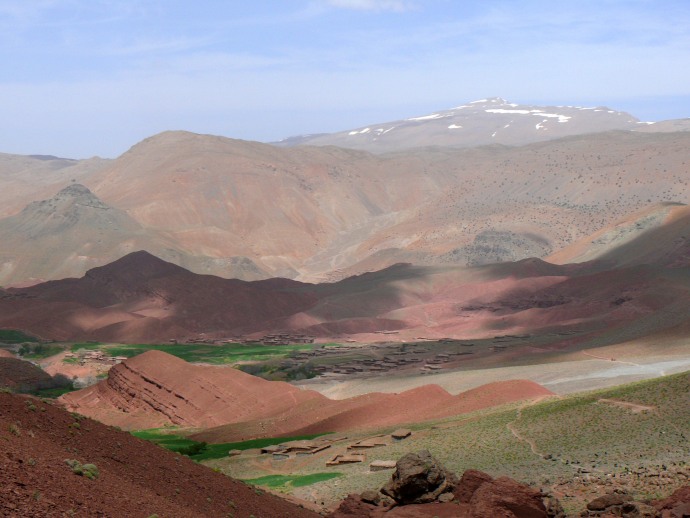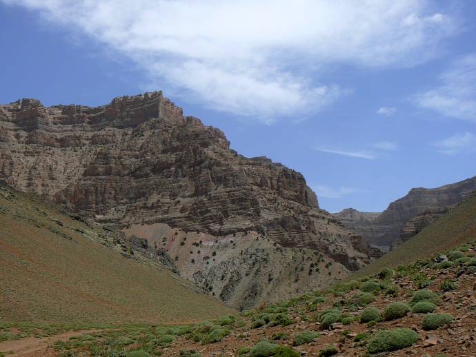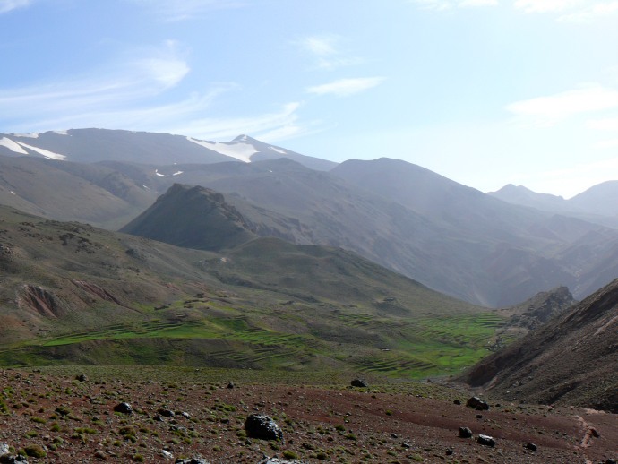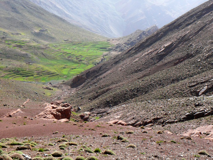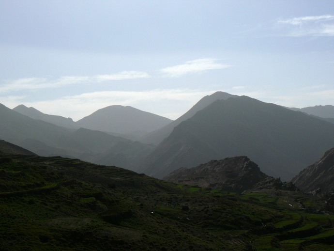 Abstieg in das Tal des Amezkan, etwa 5 km östlich von Amezri. Hier liegt schon die erste größere Ansiedlung