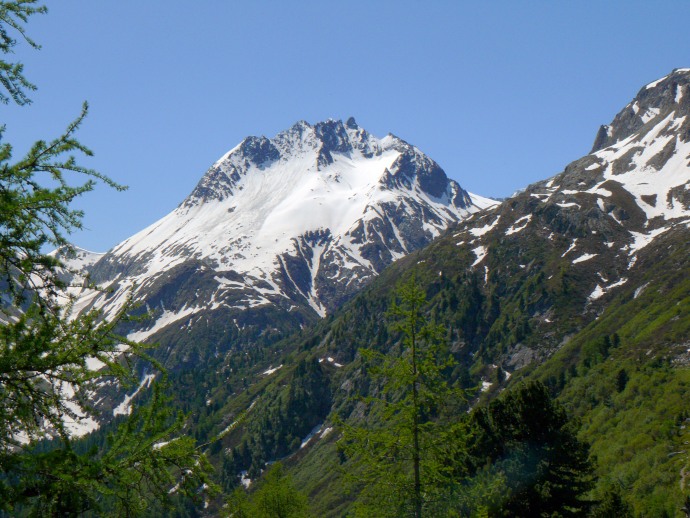 Nun biegt der Web nach Süden ab; Maloja und das Bergell verschwinden aus dem Blickfeld. Nun dominieren andere Berge und Übergänge die Sicht. Hier der Murettopass, früher ein viel begangener Übergang ins italienische Veltlin.