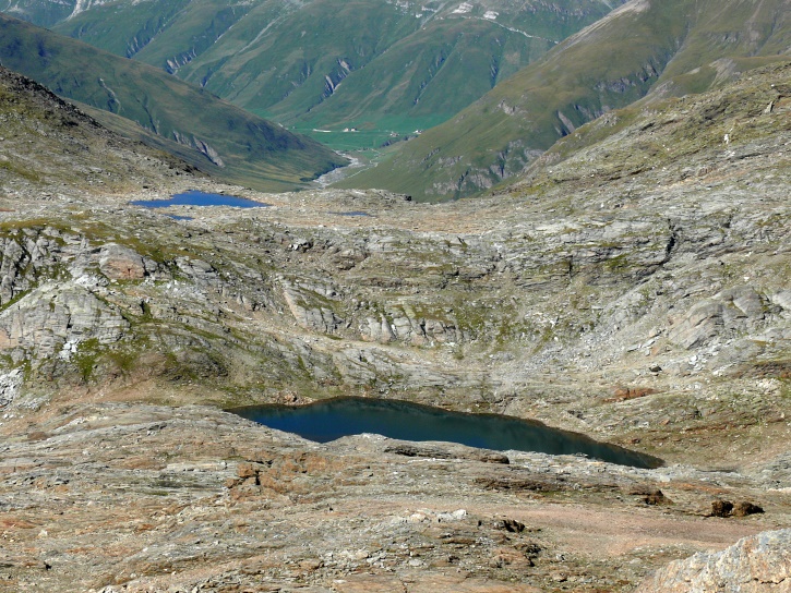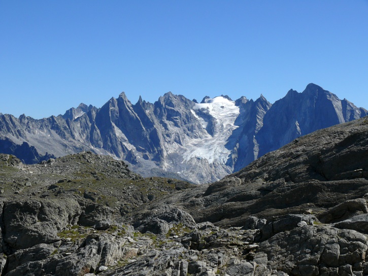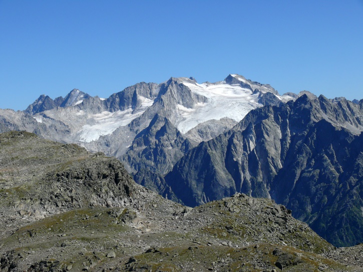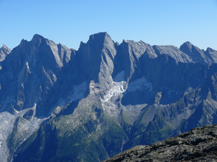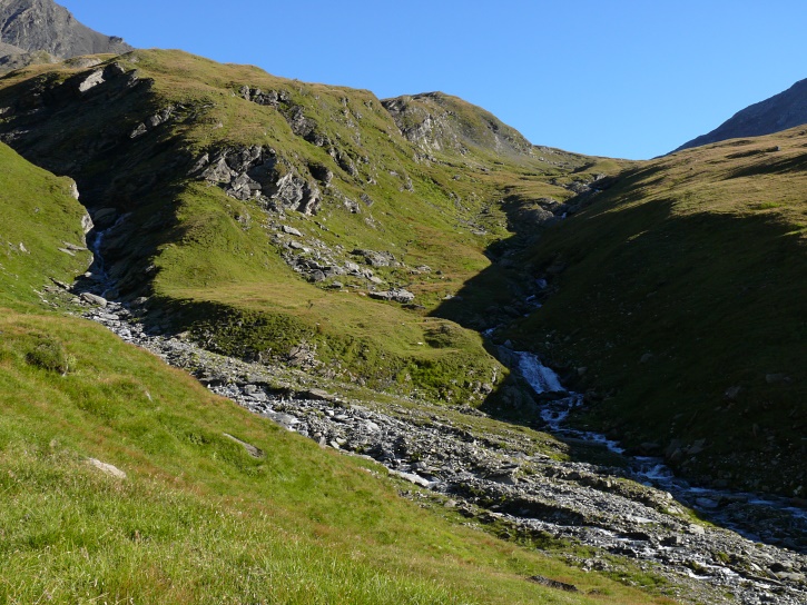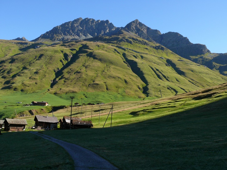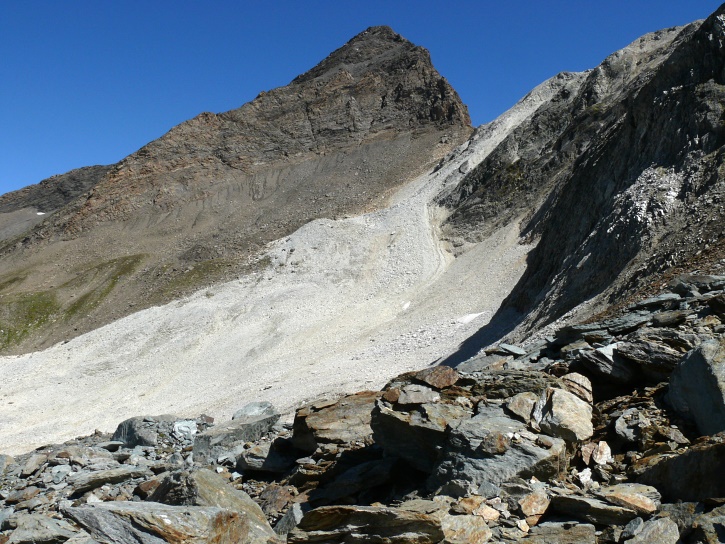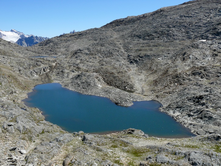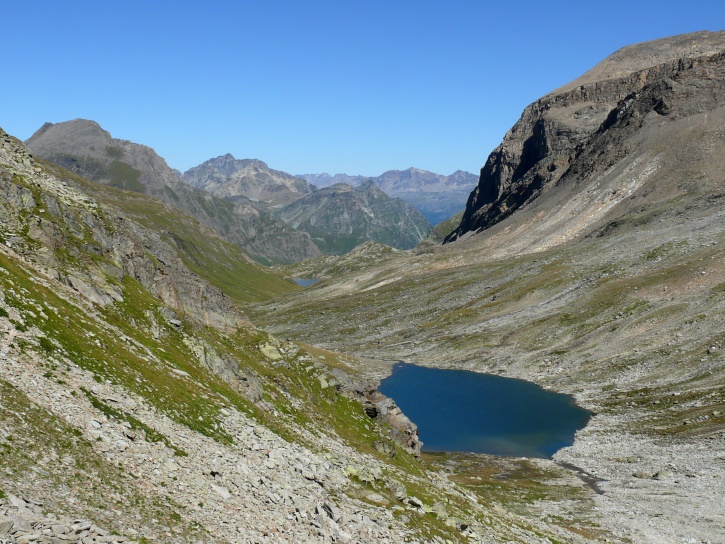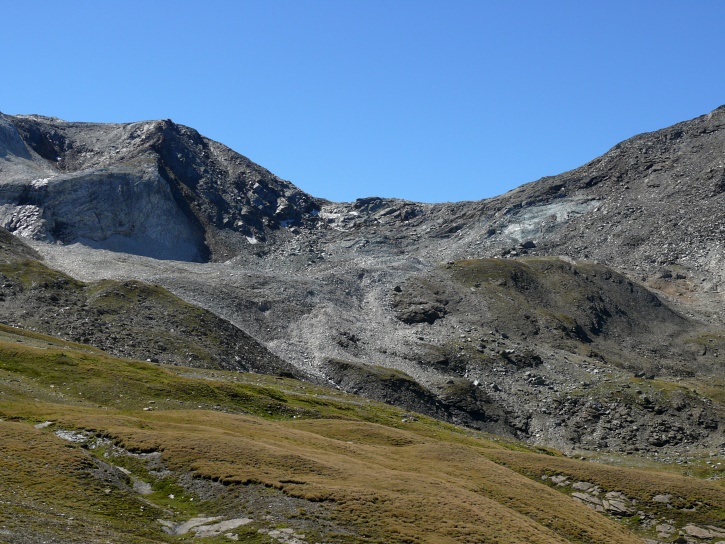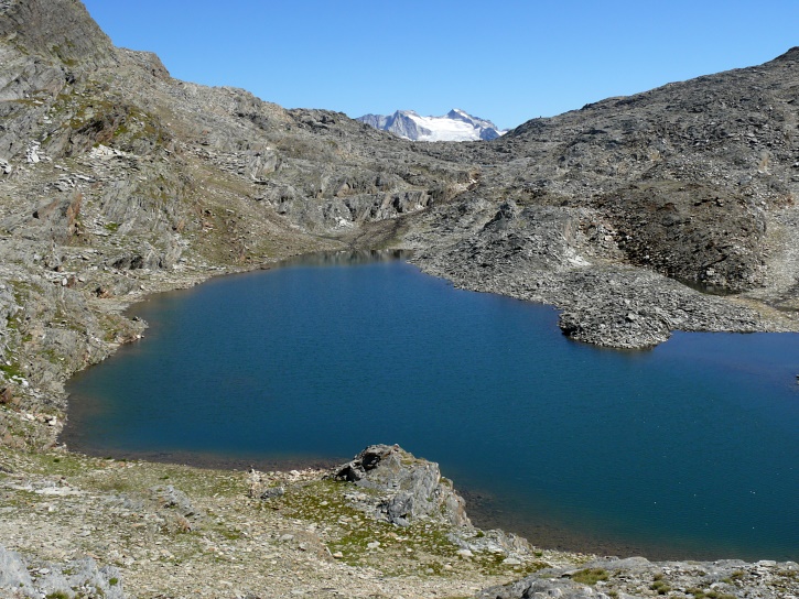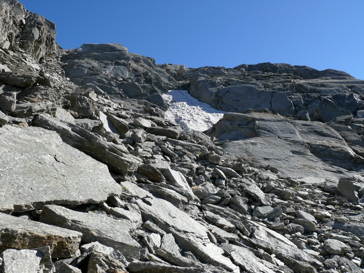 Am zweiten Tag ging es von Juppa aus in einem Gewaltmarsch (22 km) nach Süden zum Bergalga-Pass und weiter zum Piz dal Märc (bzw. dessen Nebengipfel, ca. 2940 m), von dem aus man eine gute Sicht auf die Bergeller Berggipfel (und wenn man wie ich Glück hat auch auf eine Steinbock-Kolonie) hat. Hier offenbart sich leider ein schwerer touristischer Nachteil der Gegend um Juf: Bewandert wird sie in der Regel nur als Durchgangsetappe. Rundtouren sind nur schwer zusammenzustellen, will man nicht gerade 10 h auf den Beinen sein.
