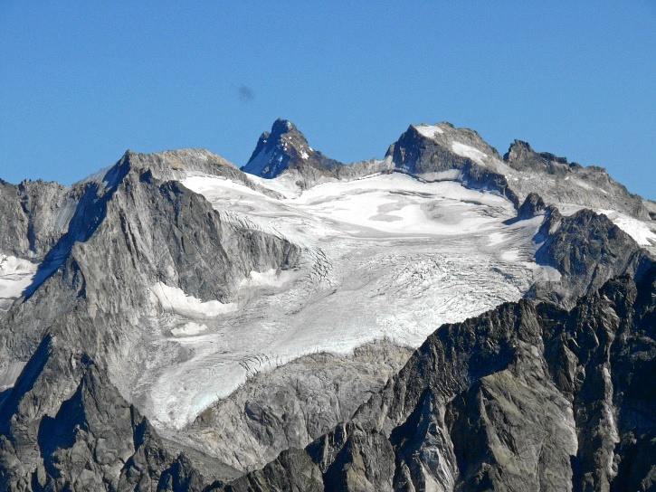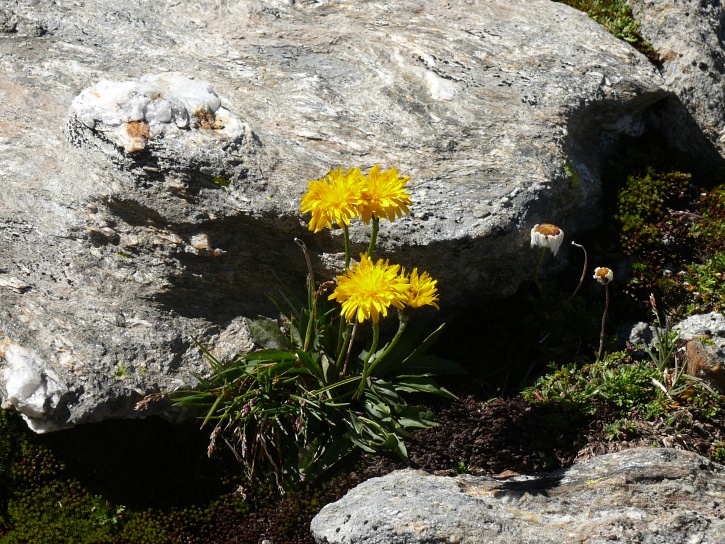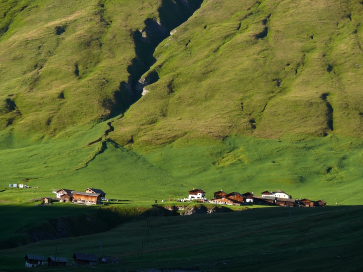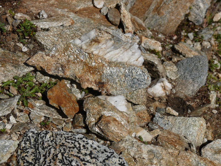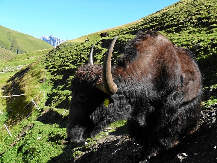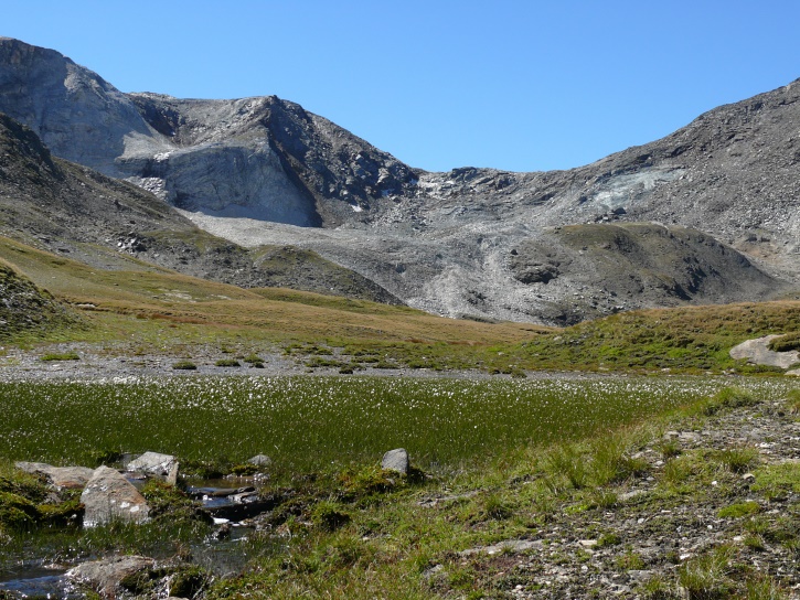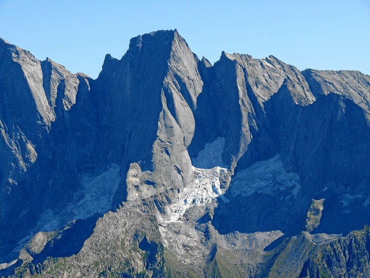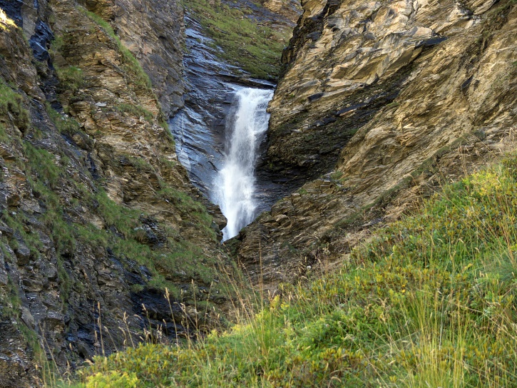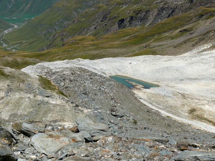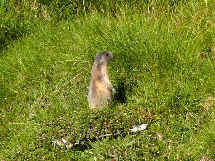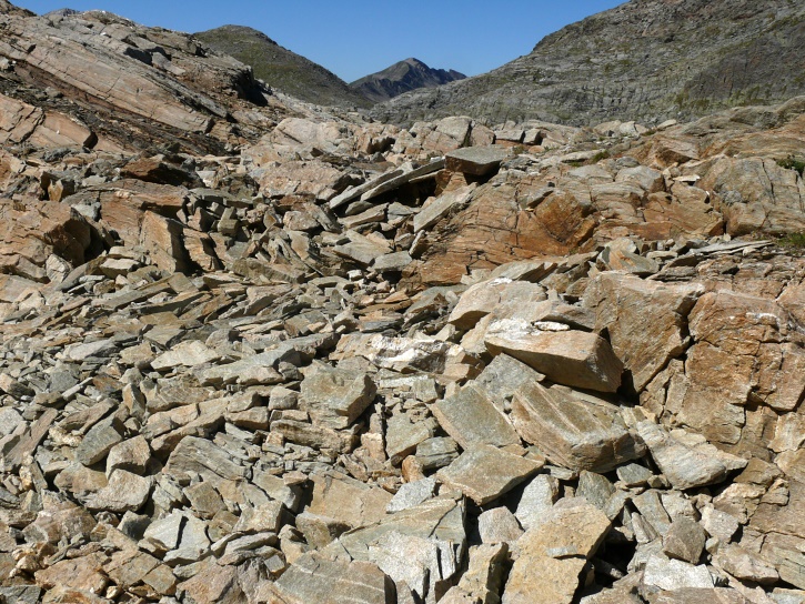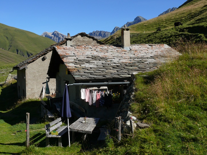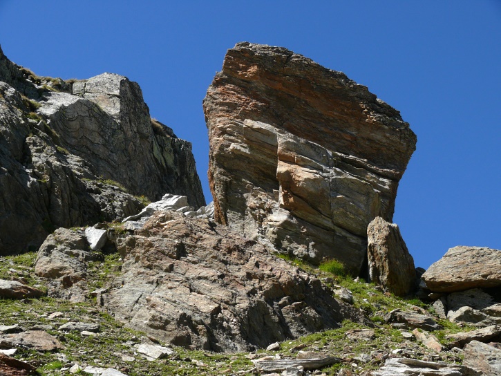 Am zweiten Tag ging es von Juppa aus in einem Gewaltmarsch (22 km) nach Süden zum Bergalga-Pass und weiter zum Piz dal Märc (bzw. dessen Nebengipfel, ca. 2940 m), von dem aus man eine gute Sicht auf die Bergeller Berggipfel (und wenn man wie ich Glück hat auch auf eine Steinbock-Kolonie) hat. Hier offenbart sich leider ein schwerer touristischer Nachteil der Gegend um Juf: Bewandert wird sie in der Regel nur als Durchgangsetappe. Rundtouren sind nur schwer zusammenzustellen, will man nicht gerade 10 h auf den Beinen sein.