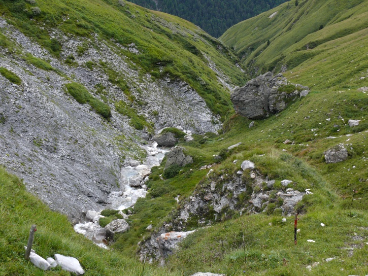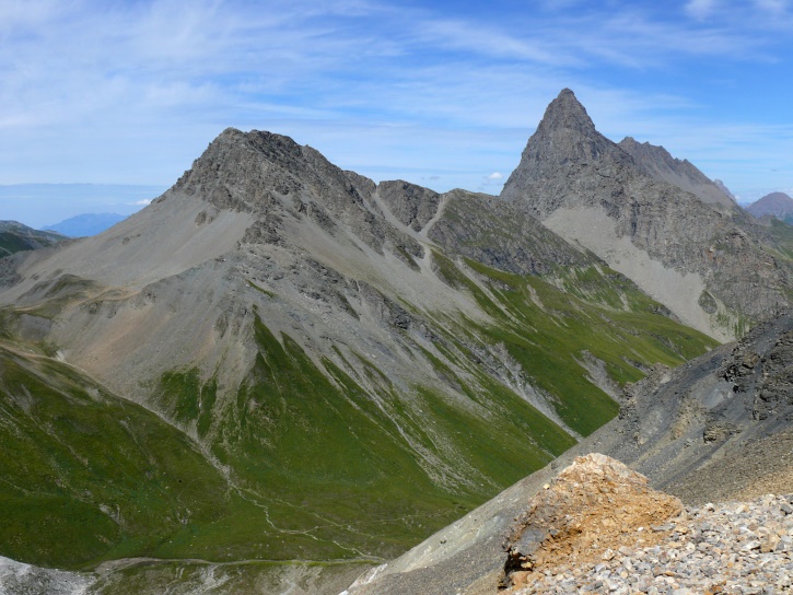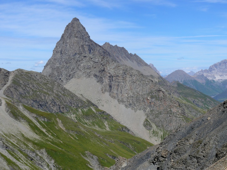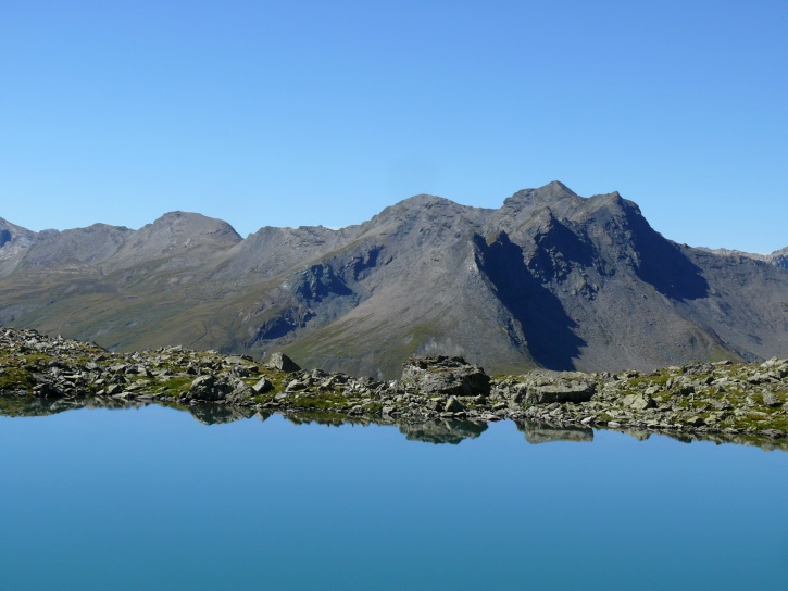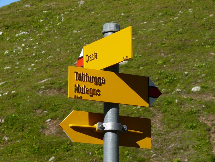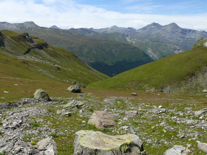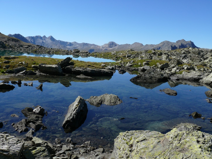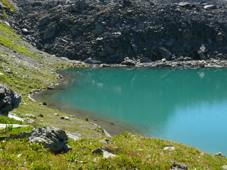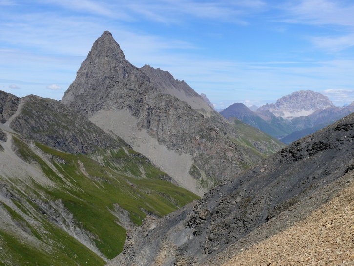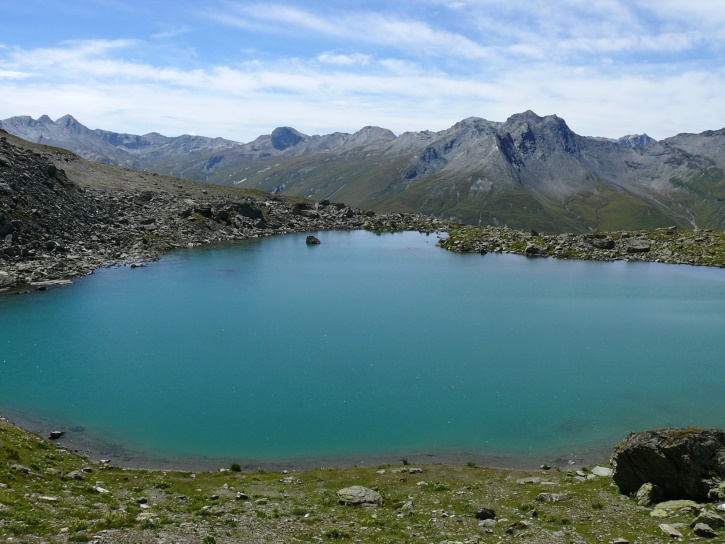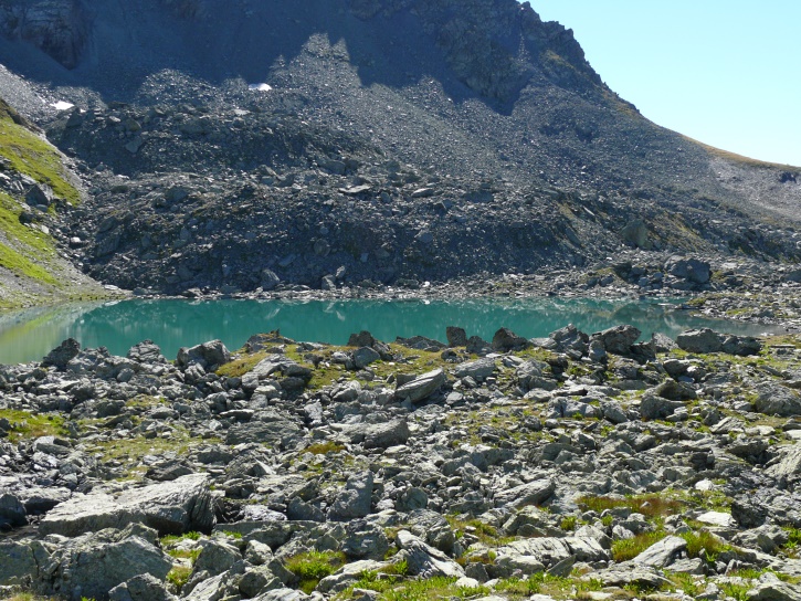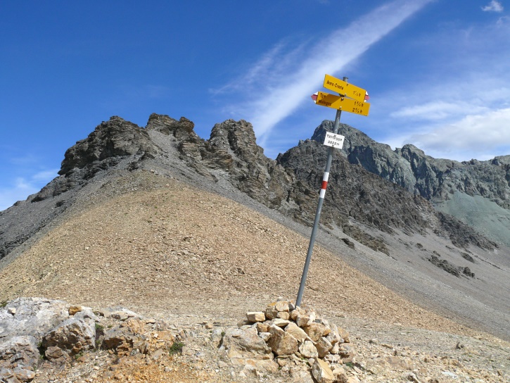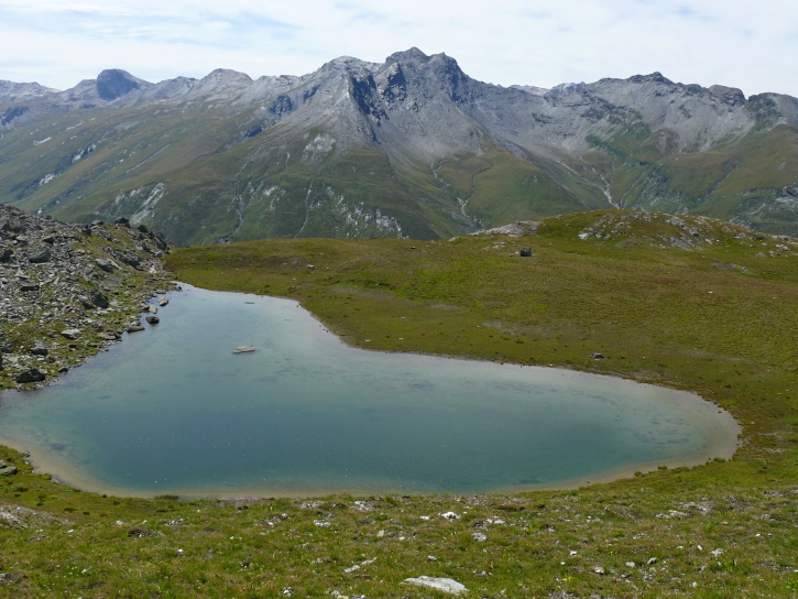 Der Abschluss am letzten Tag bildete die Tour von Cresta zum vielgepriesenen herzförmigen Bandsee (den eine Wandererin kurzentschlossen auch zum Abkühlen benutzte). Die Zeit reichte noch aus, um zur Tälifurrga (2822 m), zwischen Tälihorn (3164 m) und Wissberg (3002 m) gelegen, aufzusteigen, von wo aus man mit einem lohnenden Blick auf die Berggipfel Richtung Julierpass-Strasse und den Park Ela entschädigt wird.